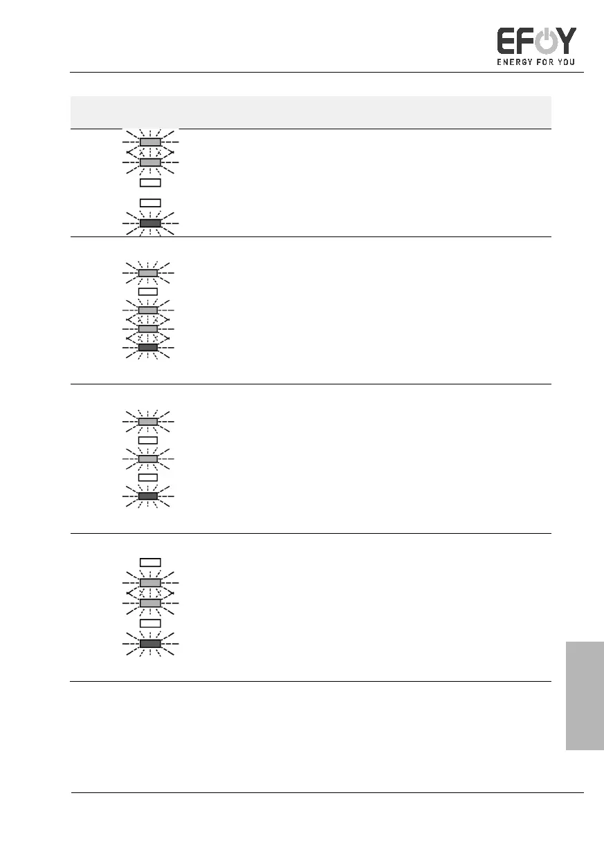 POWER ON/OFF knop en tel hoe vaak de LEDs oplichten om de interne foutcode uit te