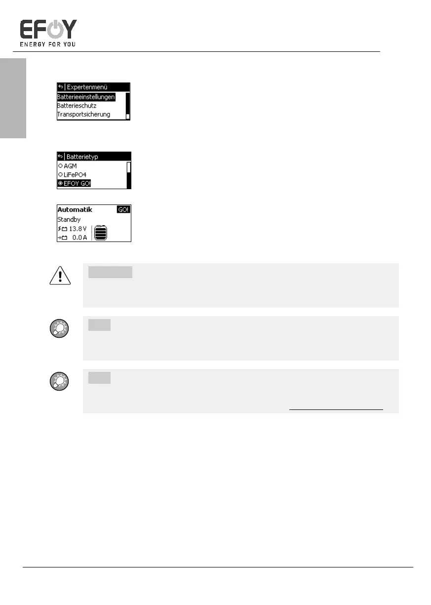 Bei falscher Einstellung des Batterietyps kann die Batterie beschädigt