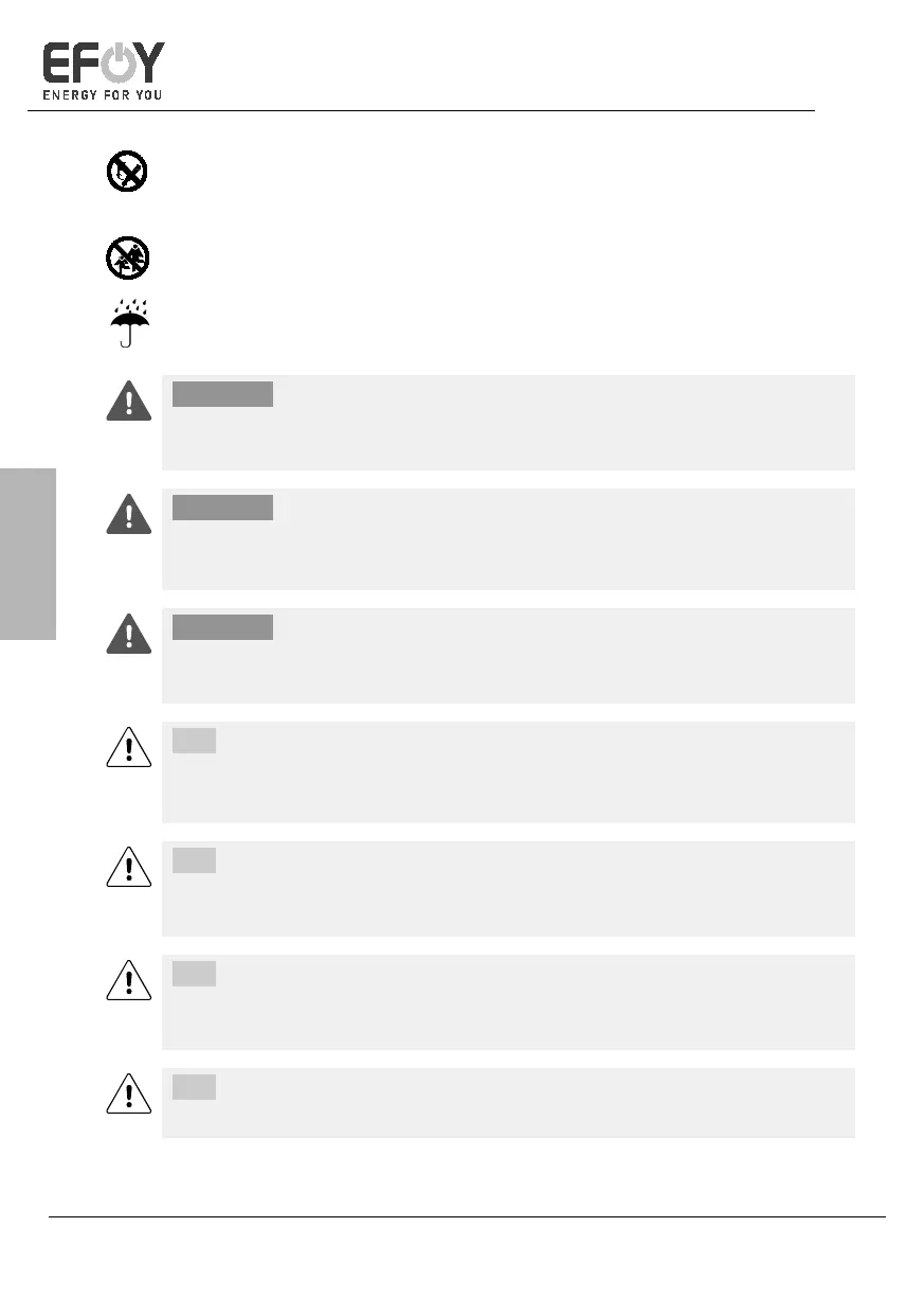 EFOY GO! er ikke vanntett. Må kun benyttes i tørre rom innendørs.