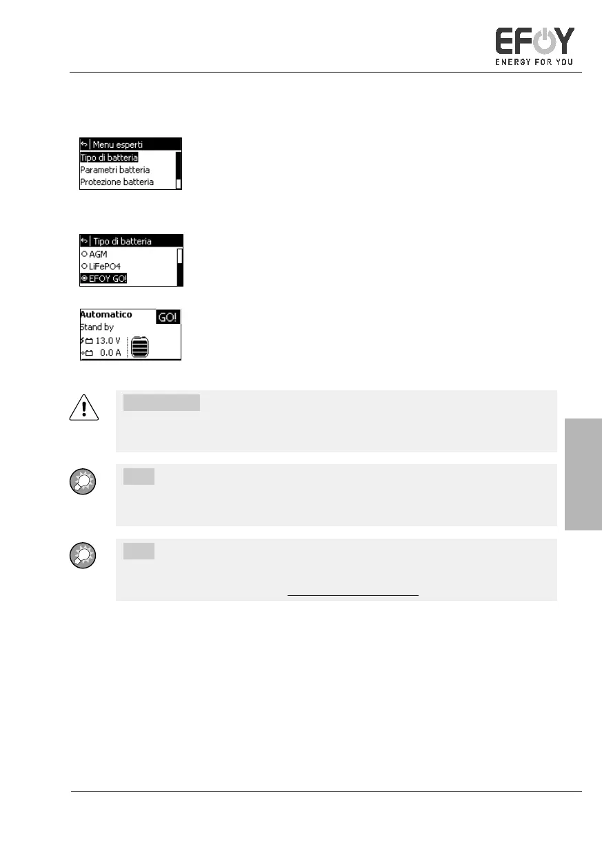 Selezionare EFOY GO! come tipo di batteria sul pannello di controllo di EFOY