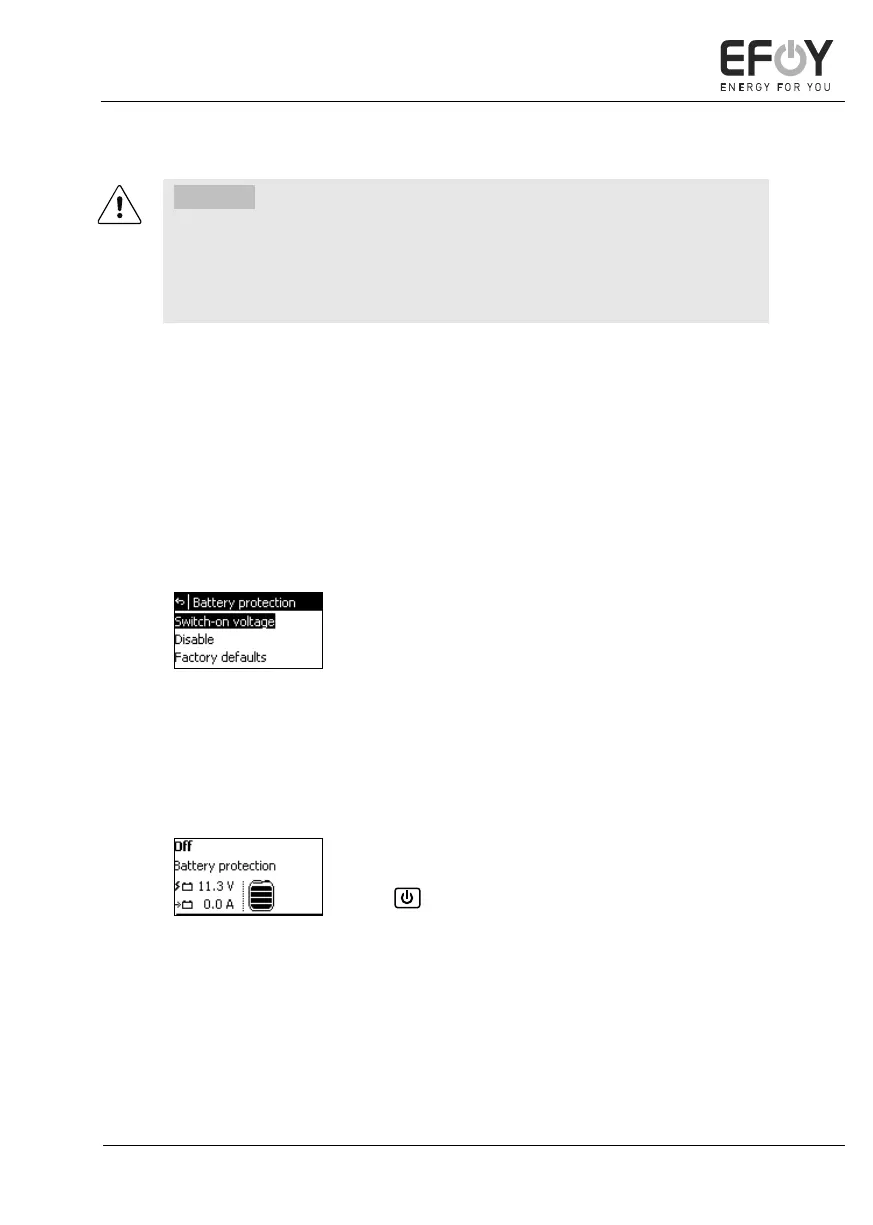 Battery protection is enabled automatically if the battery voltage (Lead-