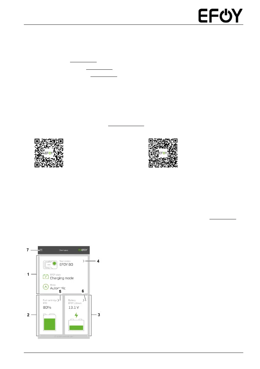 The myEFOY function of the EFOY app is available starting with Android version 4.4 and