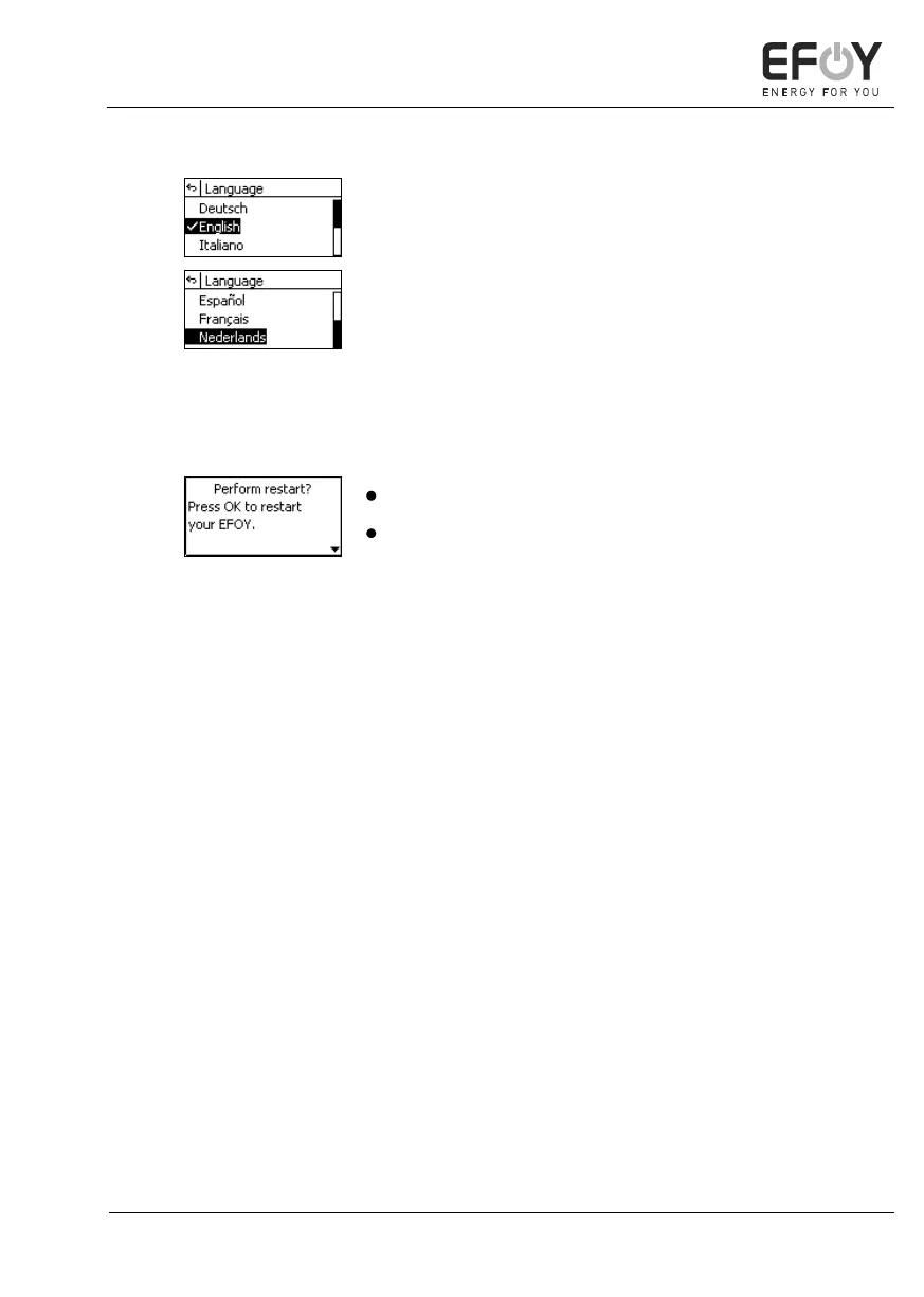 The reset function allows you to restart the EFOY Pro fuel cell: