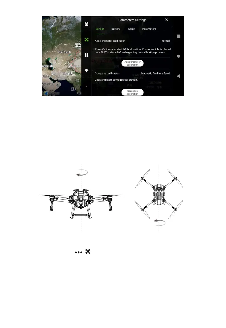 Click “Compass calibration”, check the instructions on the screen, when it indicates “doing x, the