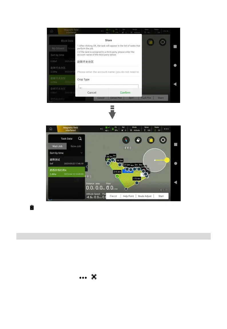 6. Tap , select the plot, adjust the route and click “Start”, then check the parameters according