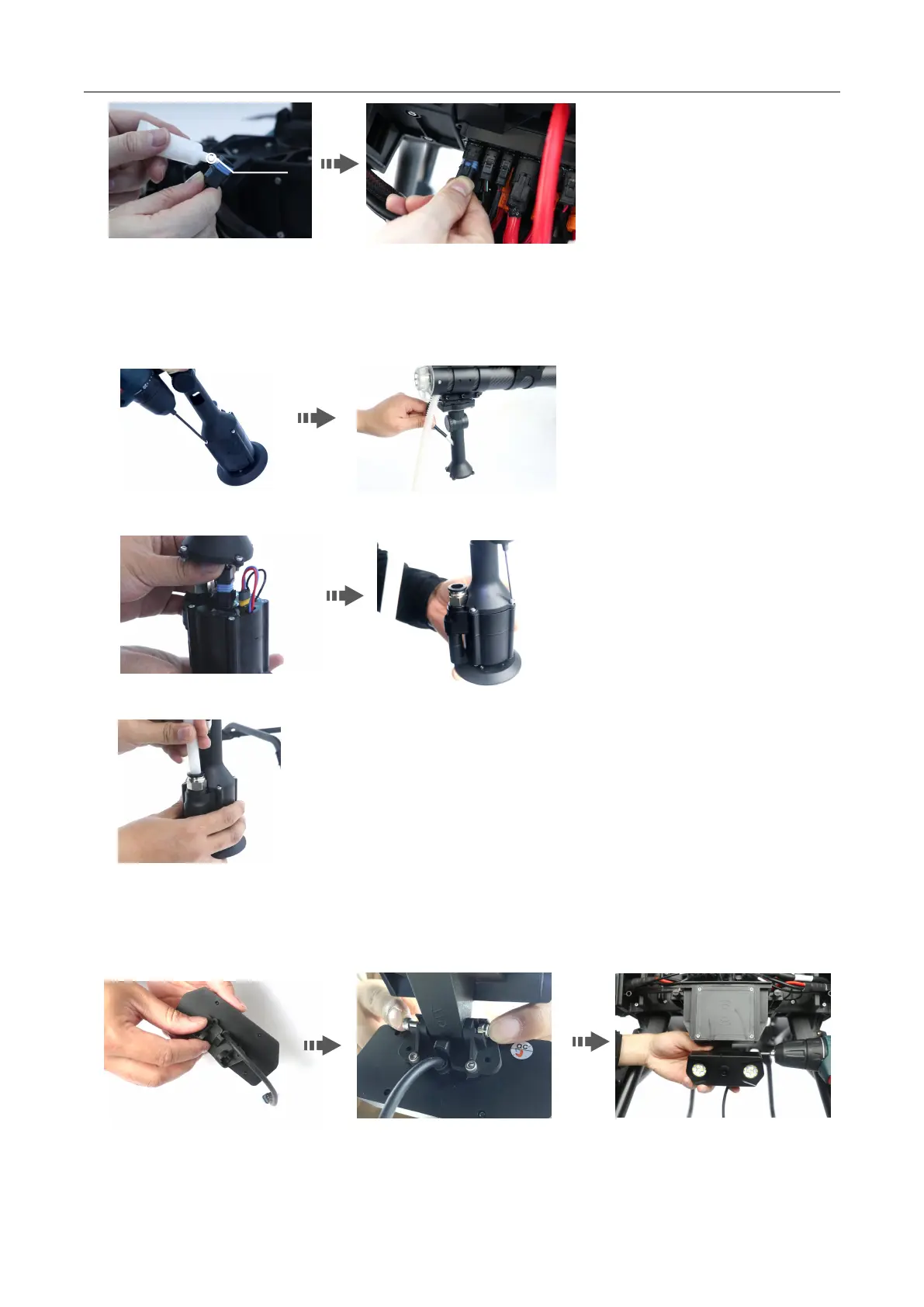 1. Remove the power module of the centrifugal nozzle, insert t he adapter cable into the inside of the bracket, and fasten it under the