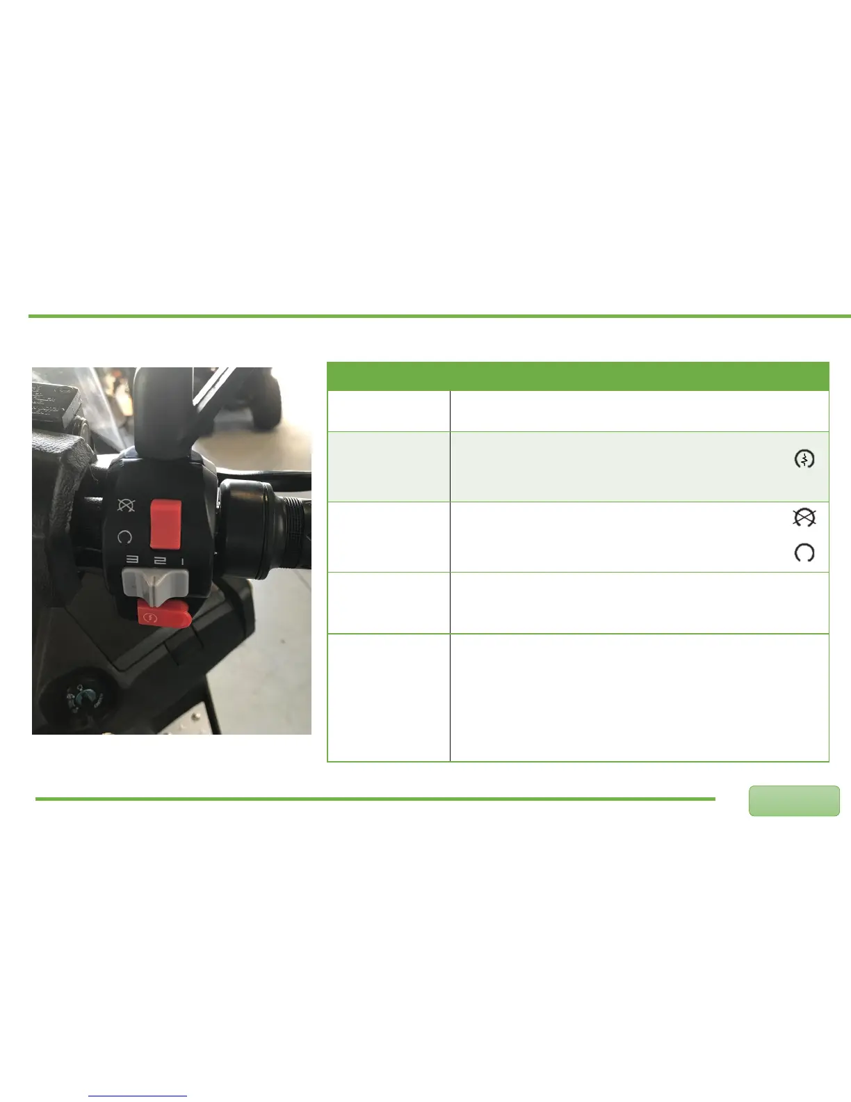 EFUN PUMA - Controls; Throttle Grip and Reverse Mode; Killswitch and Riding Modes; Front Brake Lever Function