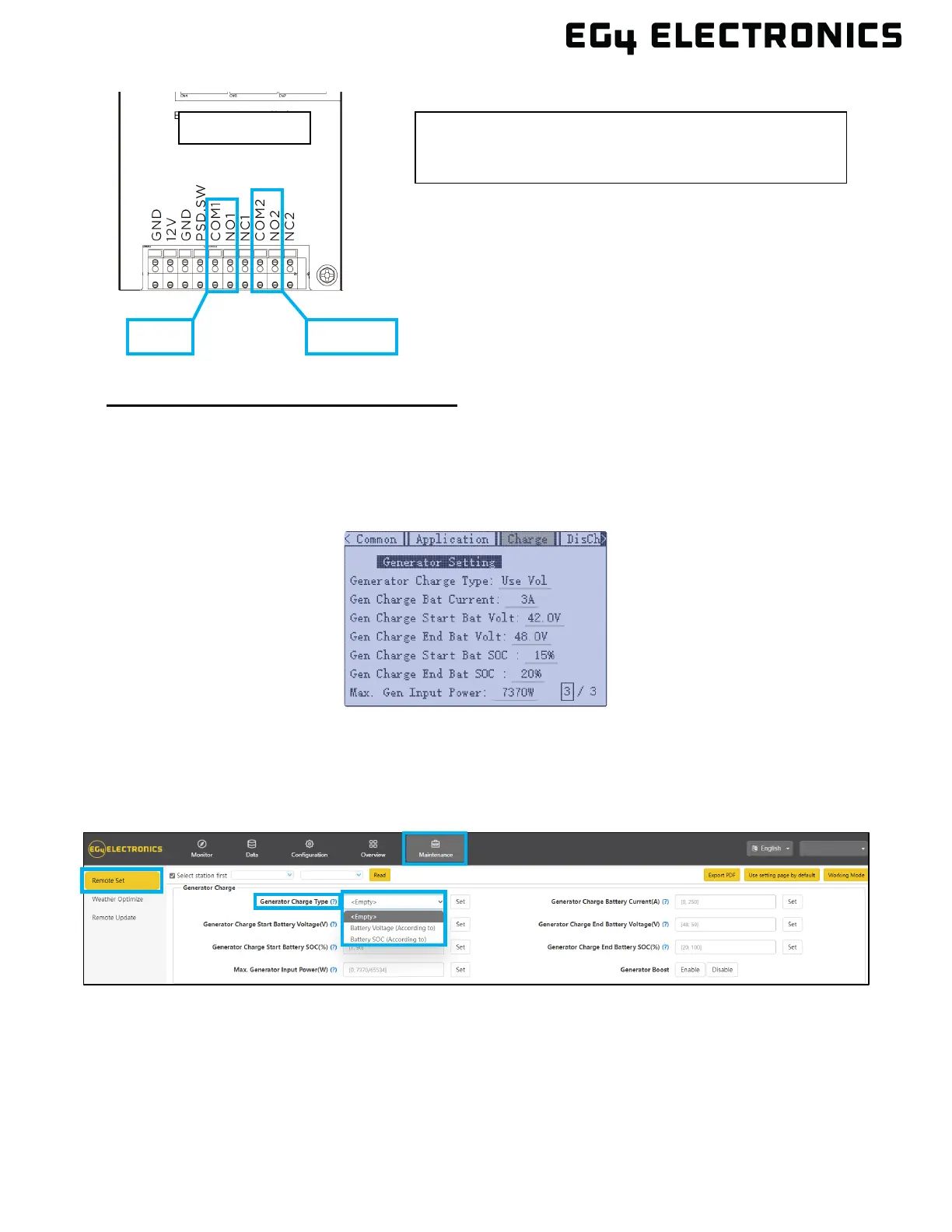 SOC. For more information on the EG4 Monitor Center and generator settings, see section 12.