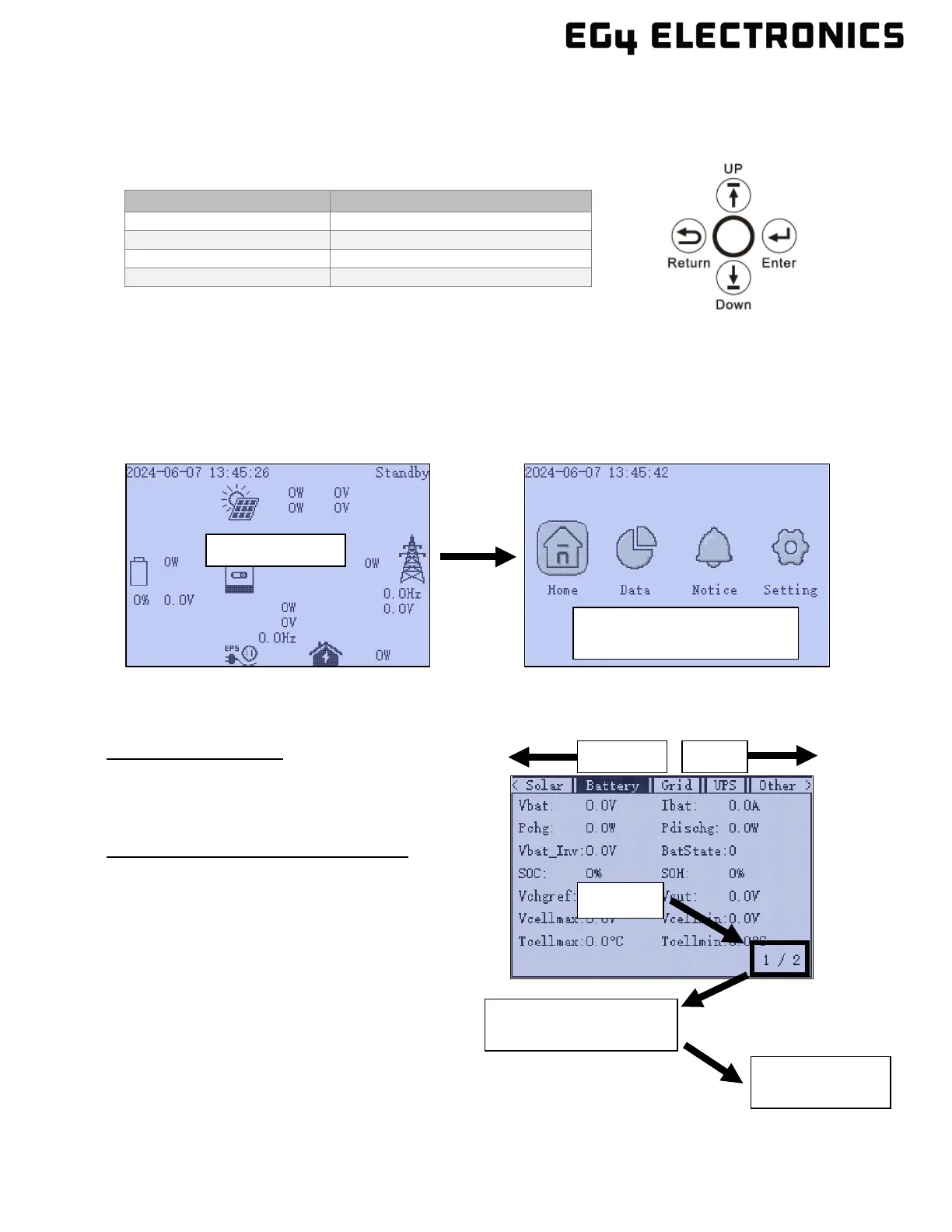 Press the “Down” arrow to move right, then press “Enter” to select. Once an item from the main
