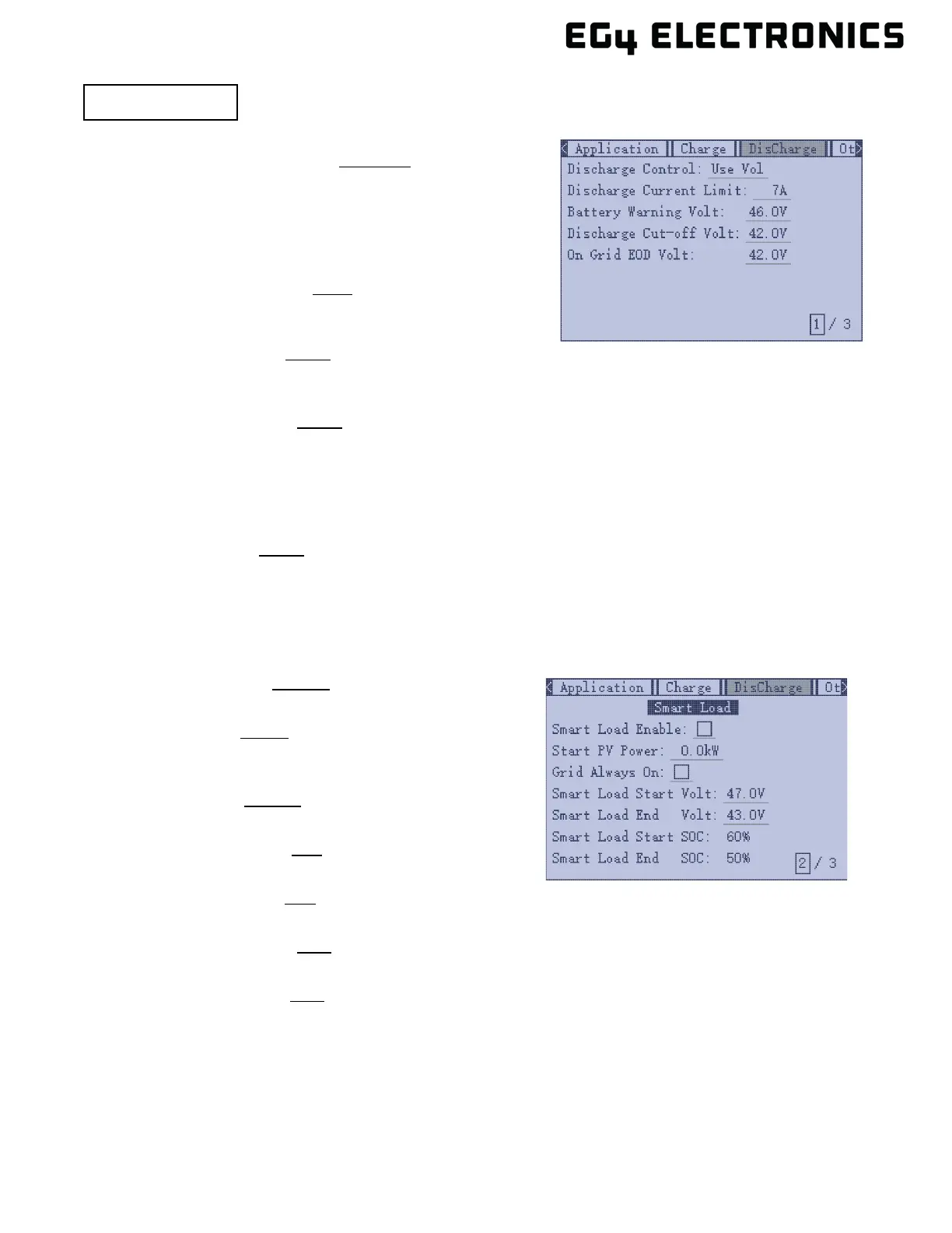 battery needs to be above 48V to allow discharge. Set this according to the battery requirements.