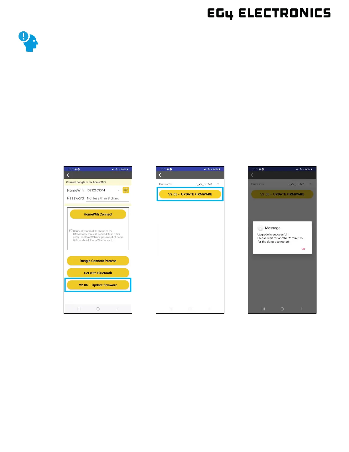 “Vx.xx Update Firmware” button to start the upgrade process. The EG4 app will