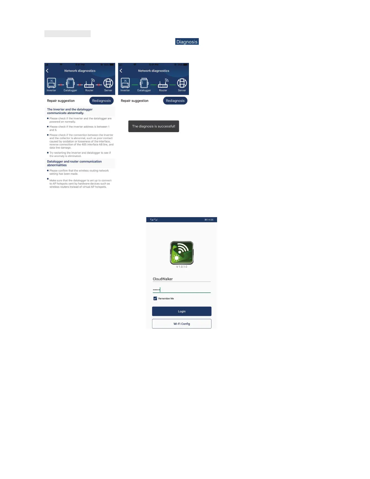 chapter 4.2 to re-set network setting. After all setting, tap “Rediagnosis” to re-connect again.
