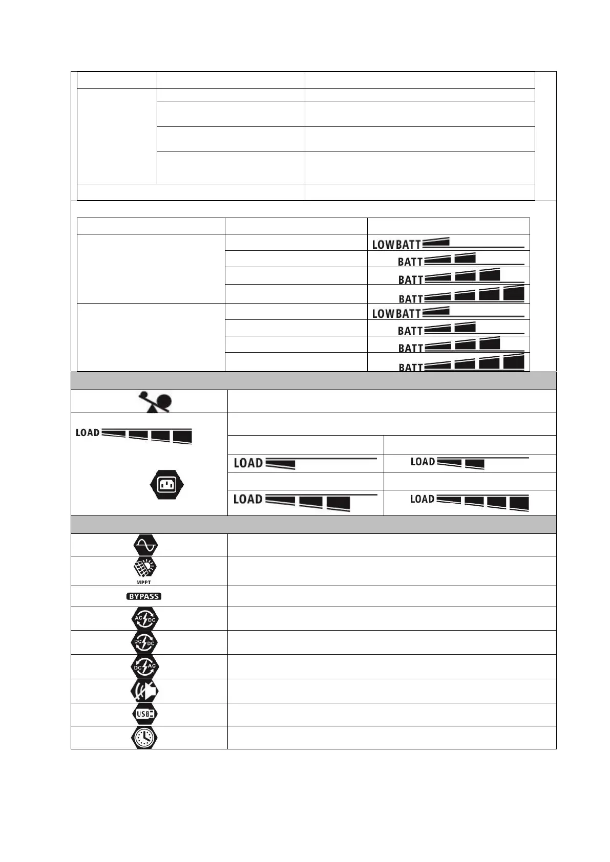 Indicates the load level by 0-24%, 25-49%, 50-74% and 75-100%.