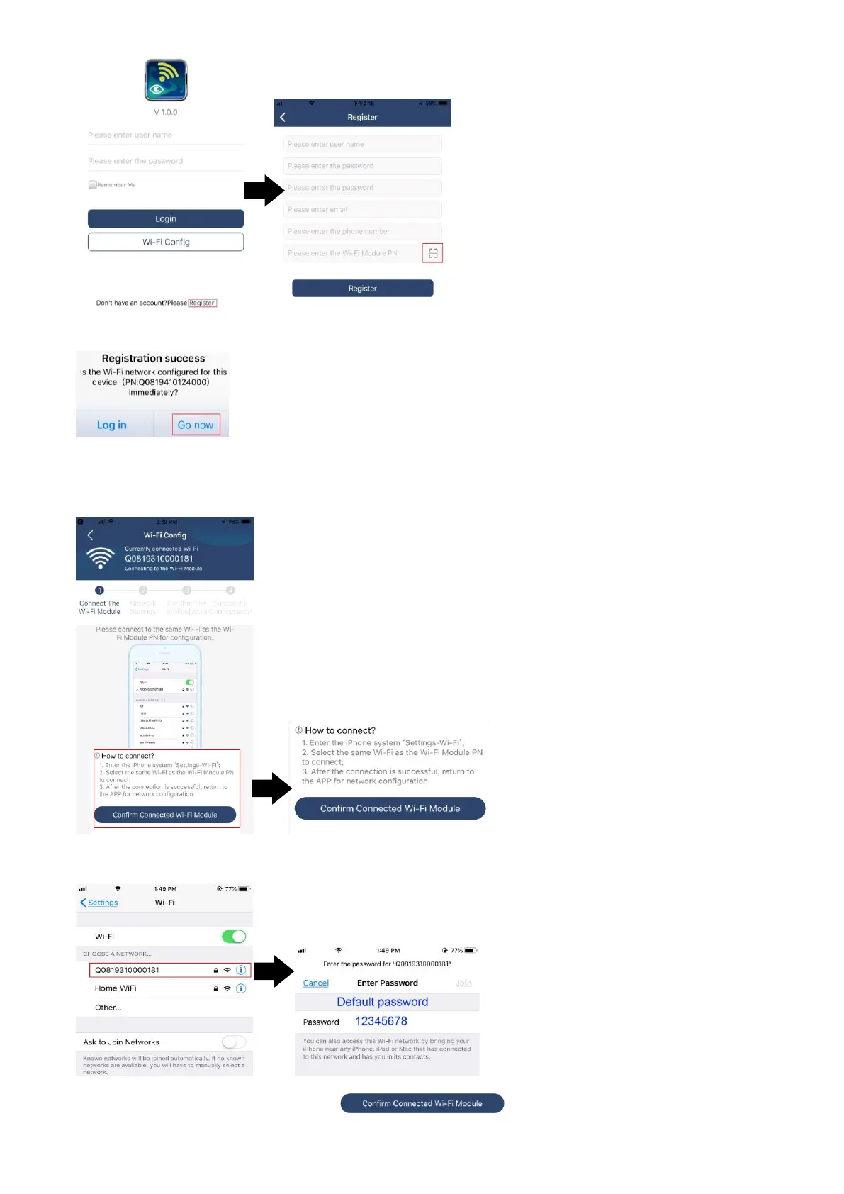 Then, return to WatchPower APP and tap “ ” button when Wi-Fi module is connected
