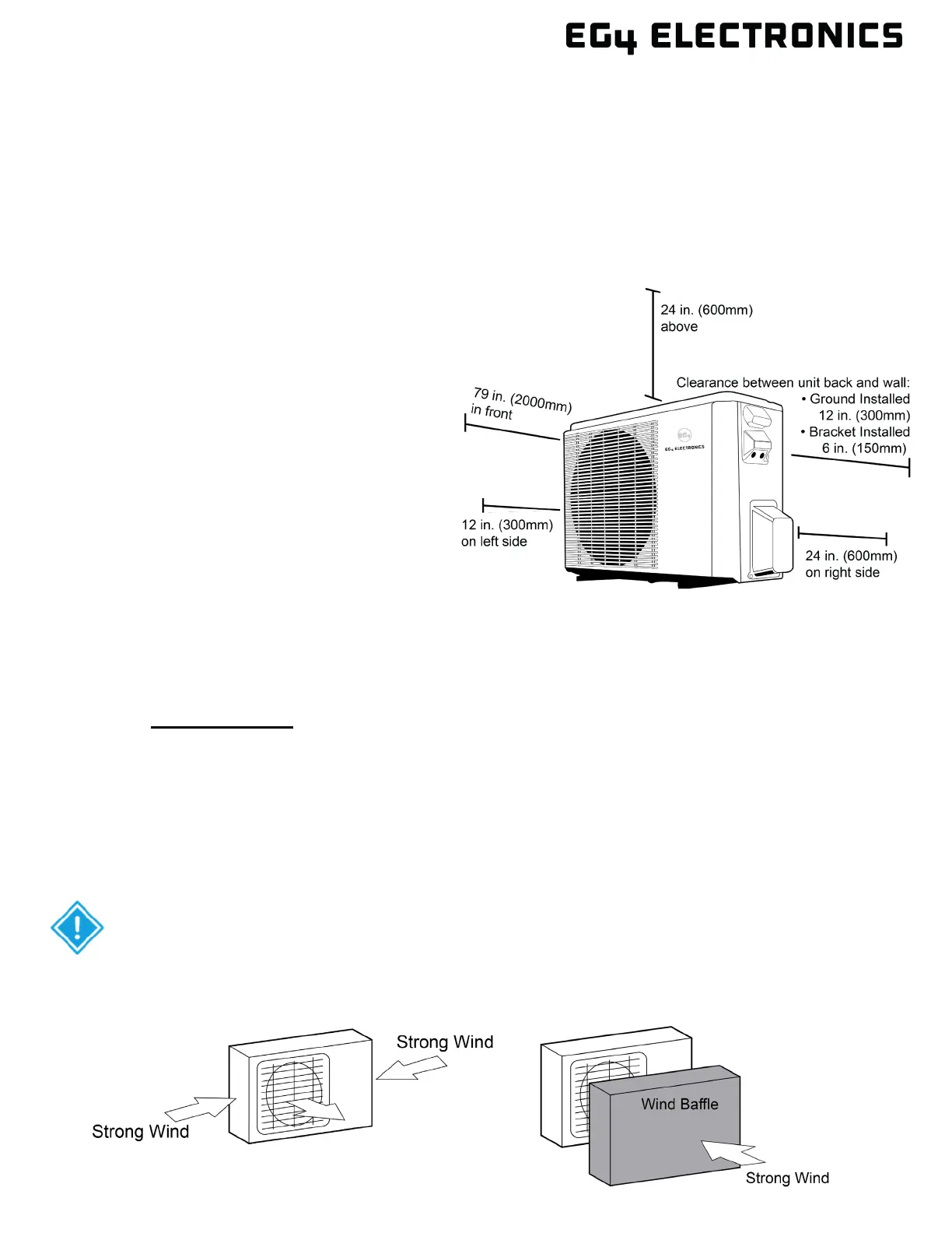If the unit is exposed to heavy wind, install unit so the air outlet fan is at a 90°
