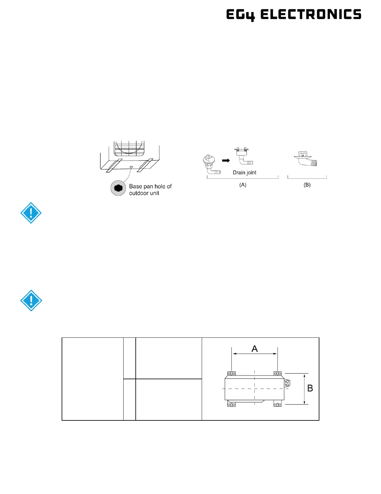 a drain joint. Before bolting the outdoor unit in place, install the drain joint at the bottom of the