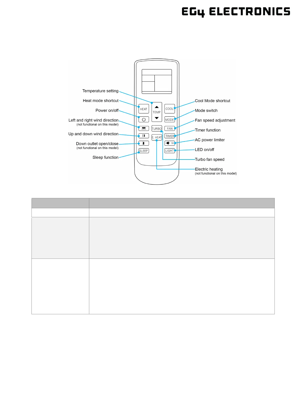 The air conditioner has an infrared remote that can fully operate the unit. Some functions on the