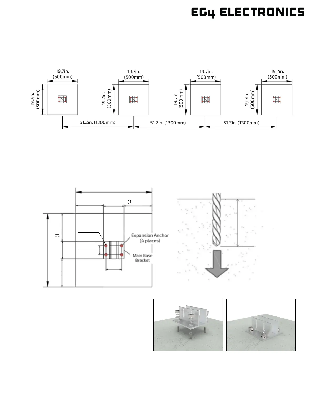 the top of each base. Drill four (4) 0.6 in. (14 mm) diameter by 3 in. (75 mm) deep holes. Install the