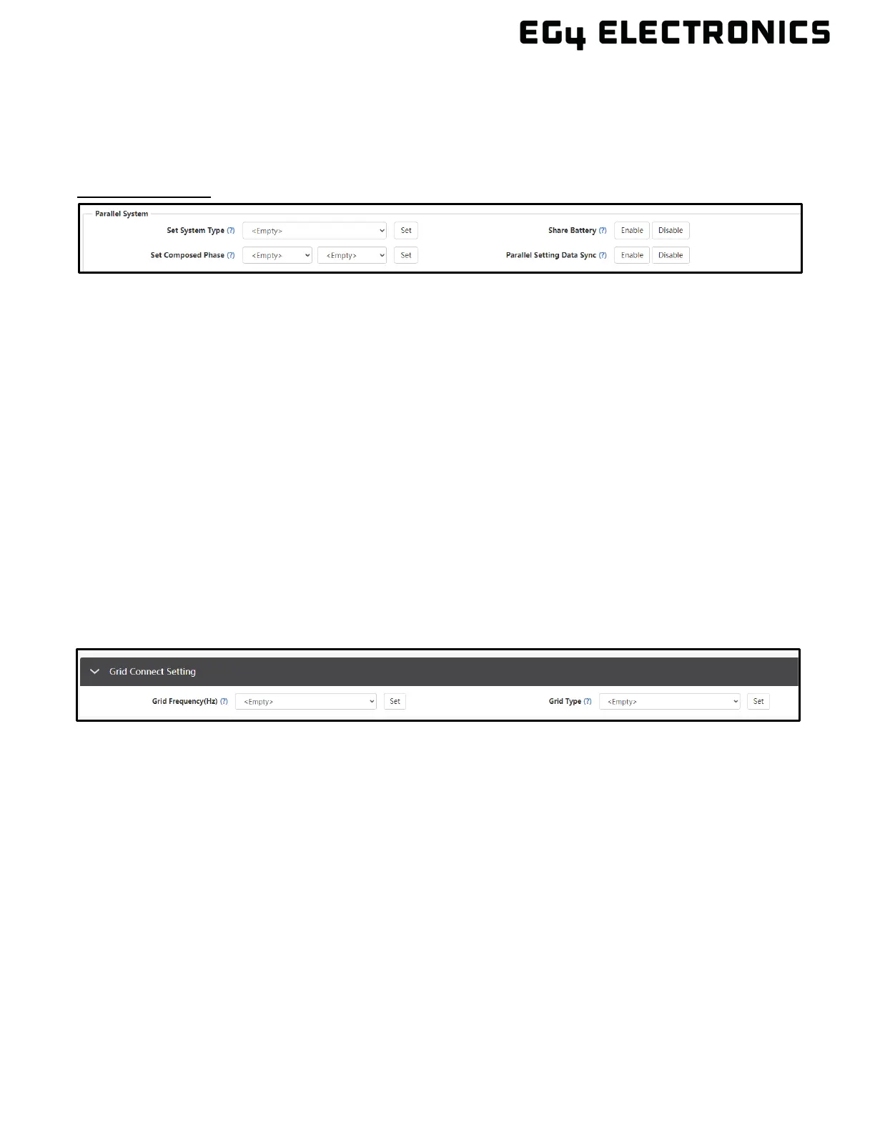 • Parallel Setting Data Sync: Syncs master inverter with all paralleled inverters.