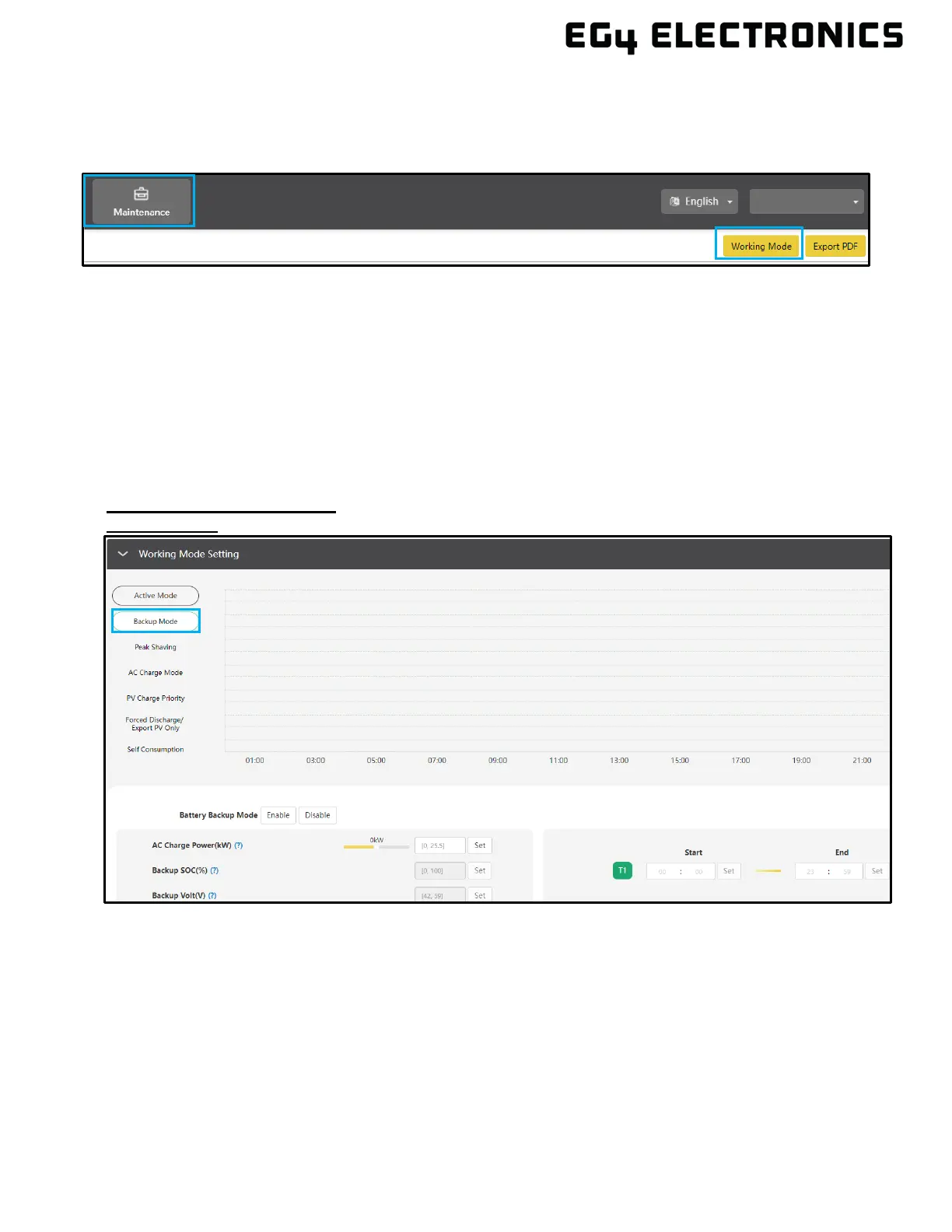 Set time to begin and end Backup Mode