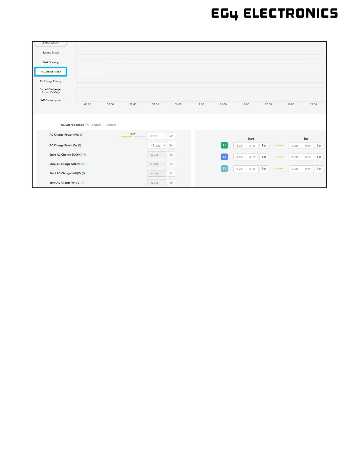 Configure how the system will charge batteries from the grid by setting custom voltage points,