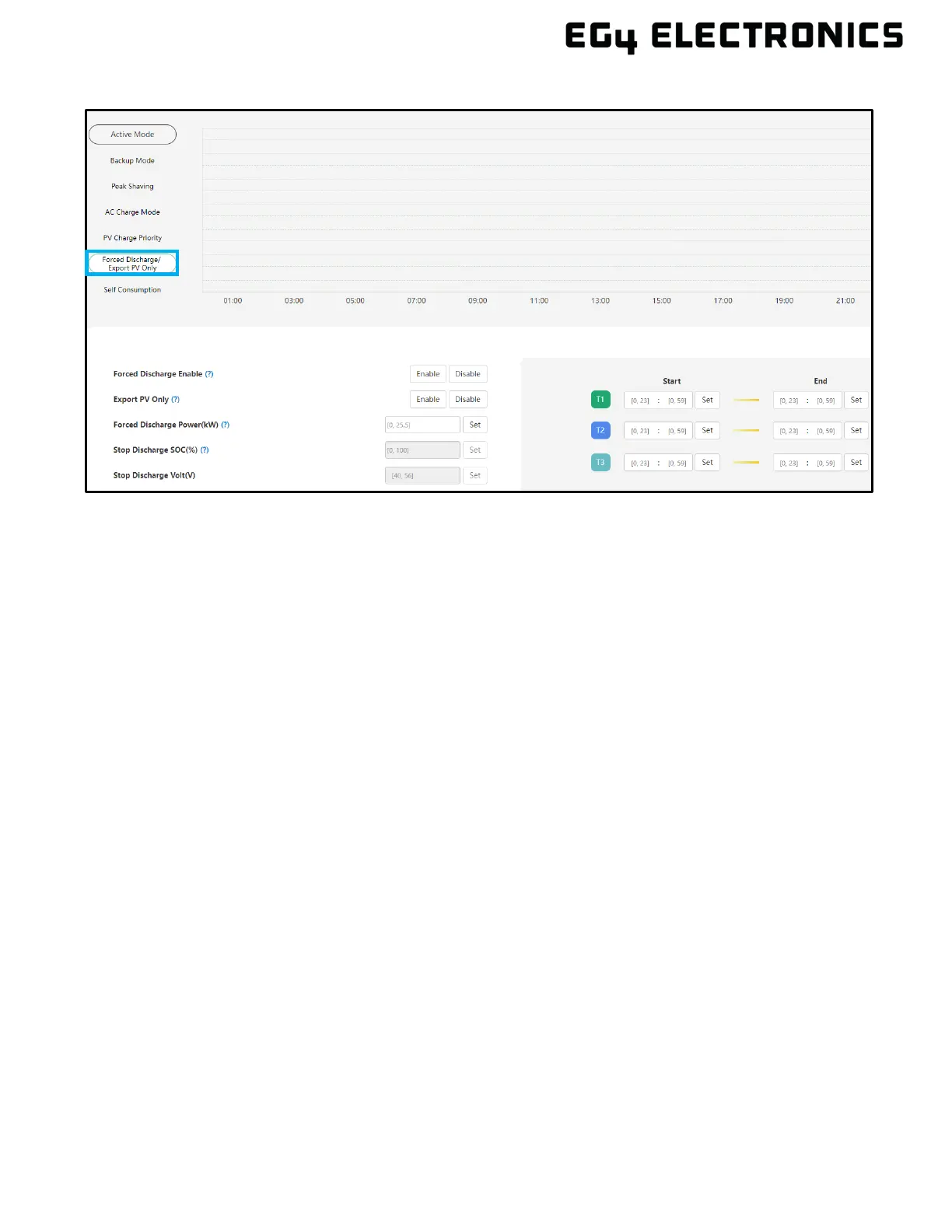 Set up to 3 different start and stop times for the Force Discharge/Sell To Grid working mode.