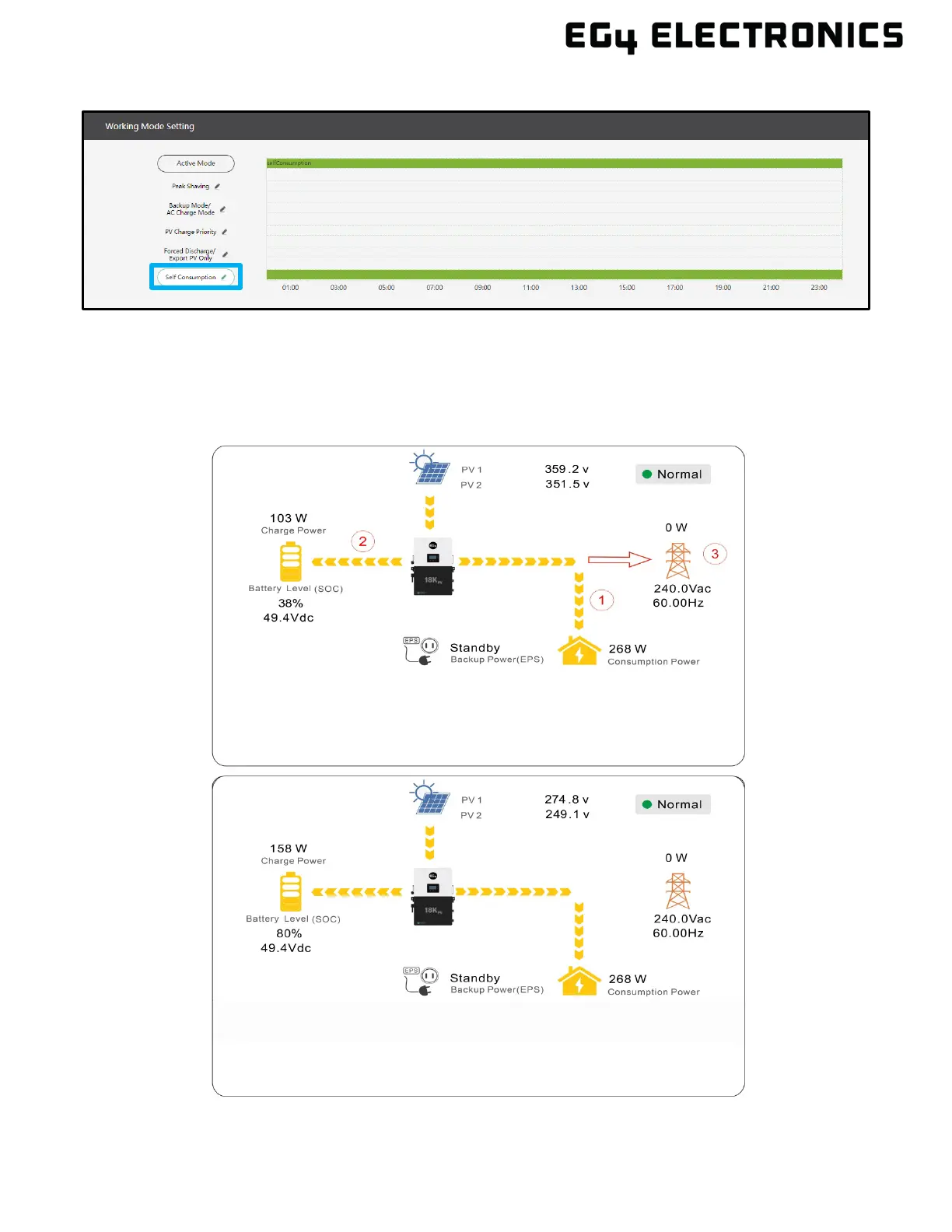 The station will default to Self-Consumption mode. The order of priority for powering loads is Solar >
