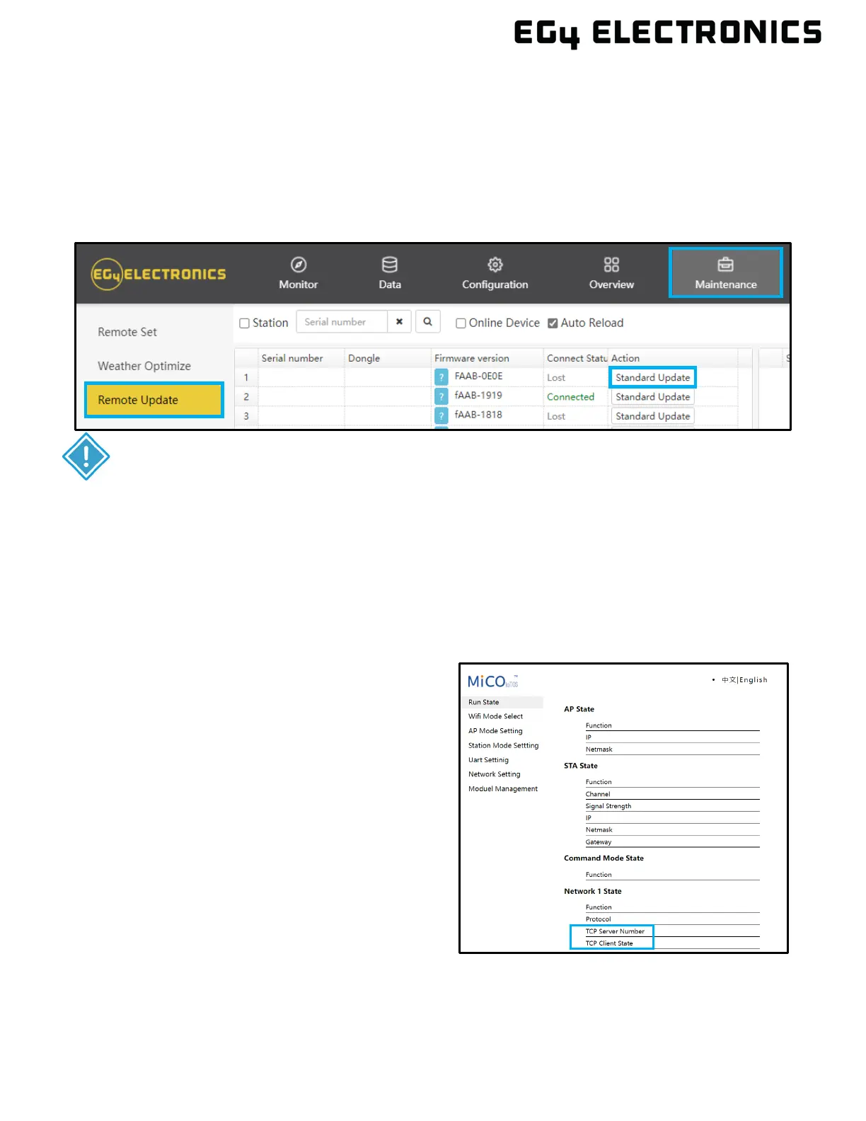 3. Choose the inverter to update and then select “Standard Update”. The Monitor Center will begin