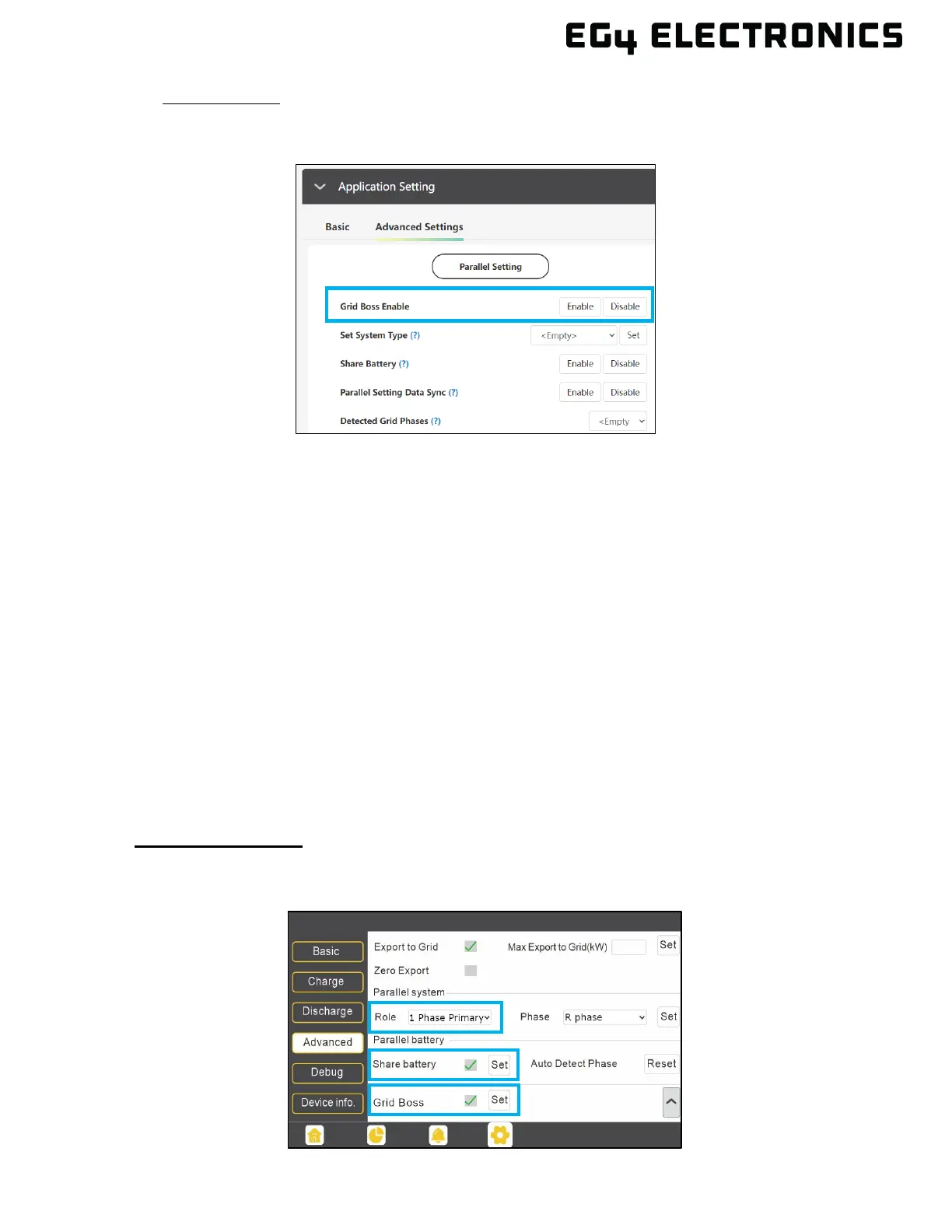 GridBOSS using the inverter’s grid port as the power source. If the “Grid Boss Enable” setting
