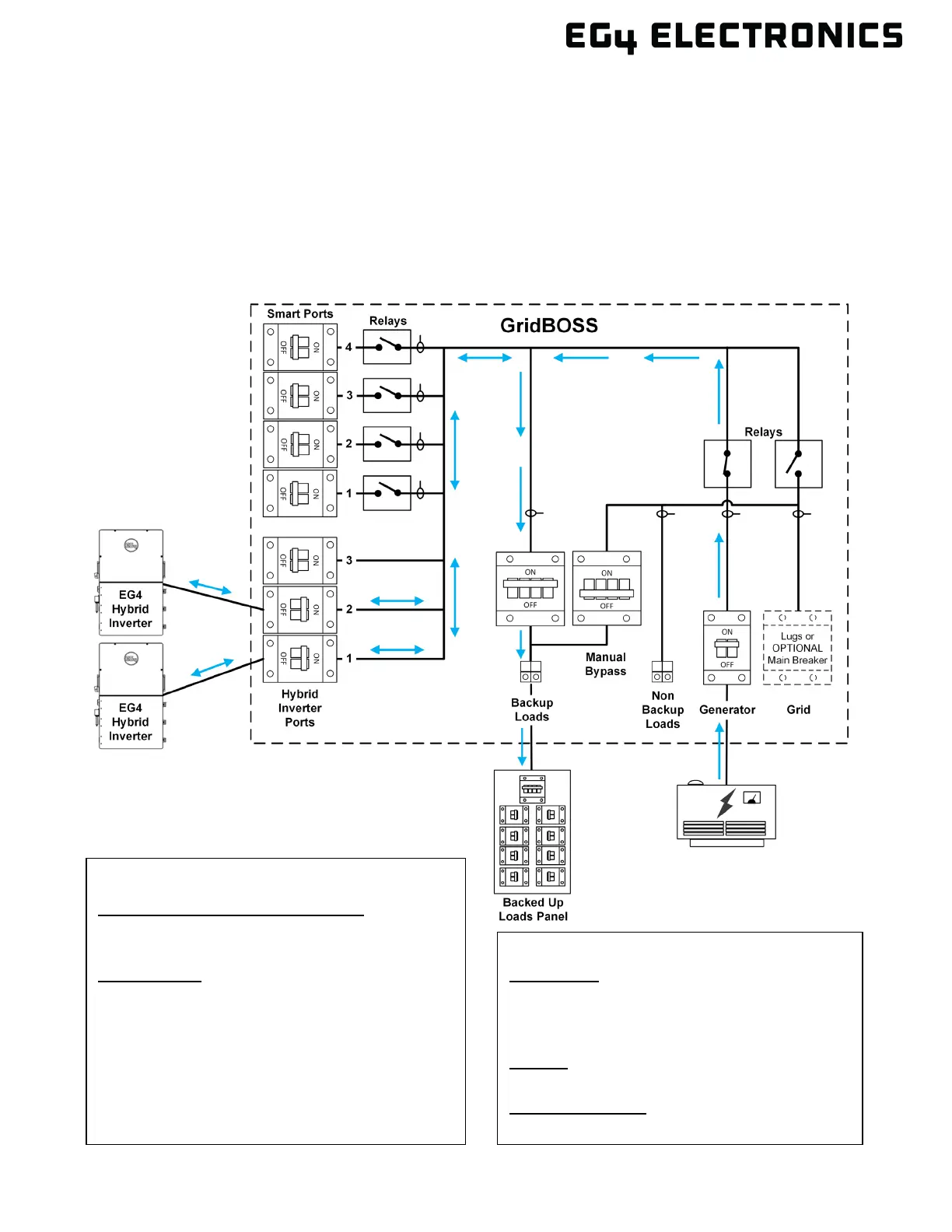 In this example, a generator has been added to the GridBOSS to power the backup loads and to