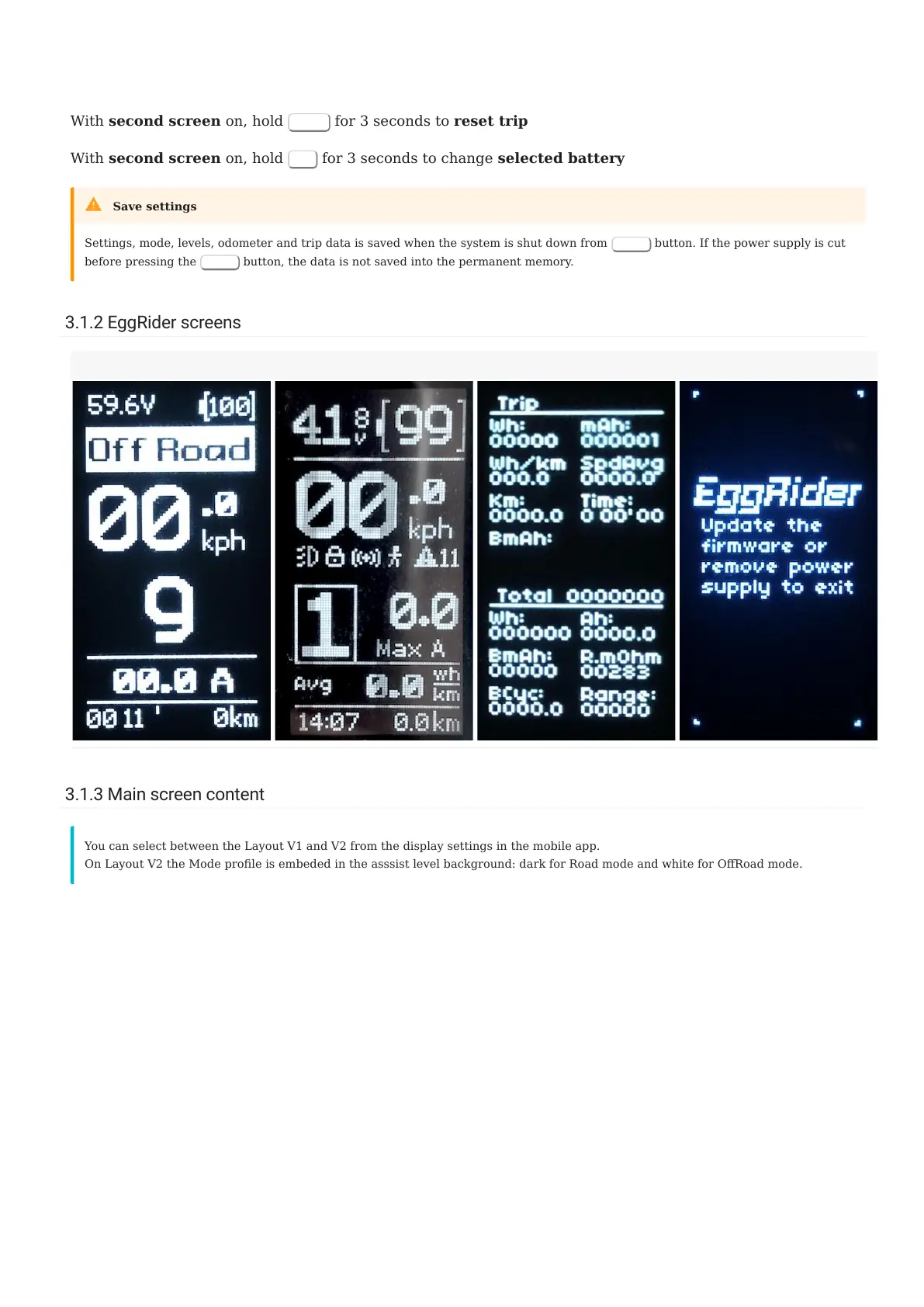 3.1.2 EggRider screens