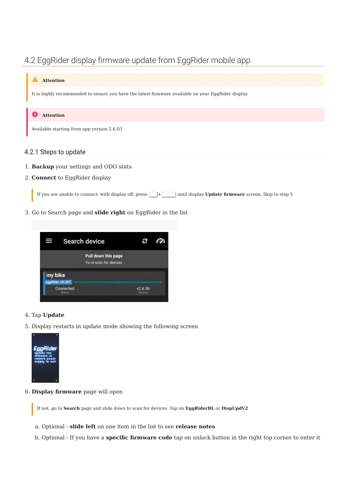 It is highly recommended to ensure you have the latest rmware available on your EggRider display.