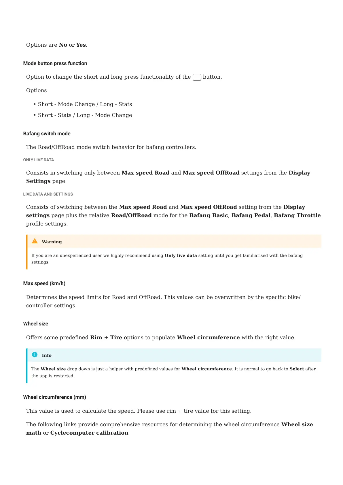 If you are an unexperienced user we highly recommend using Only live data setting until you get familiarised with the bafang