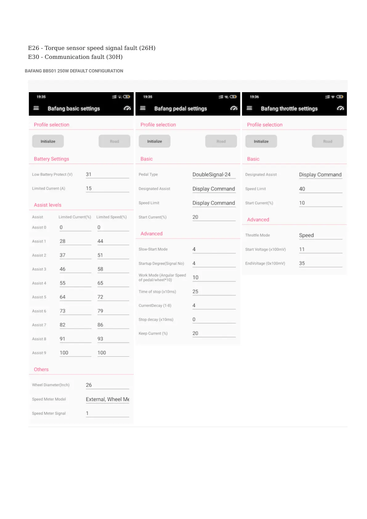 BAFANG BBS01 250W DEFAULT CONFIGURATION