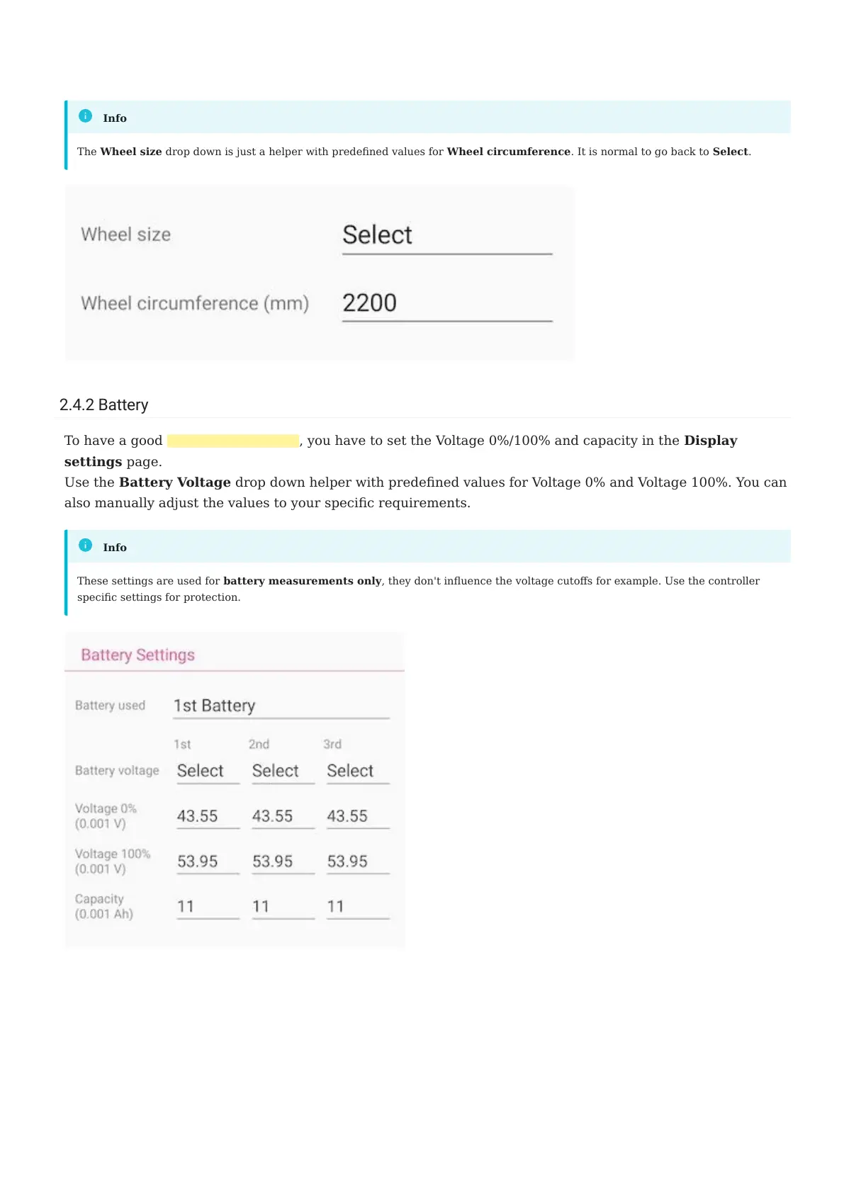 These settings are used for battery measurements only, they don't inuence the voltage cutos for example. Use the controller