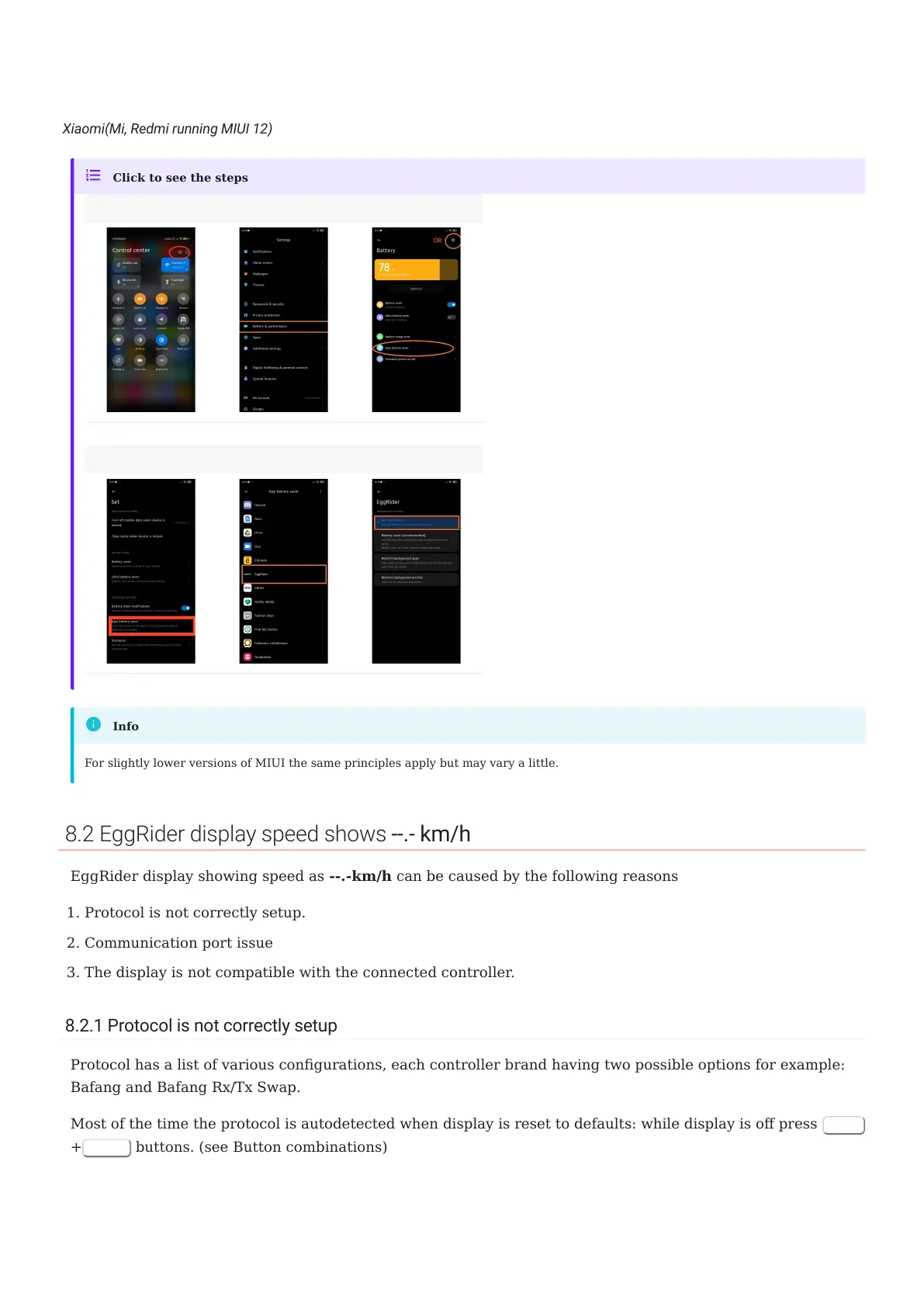 8.2 EggRider display speed shows --.- km/h