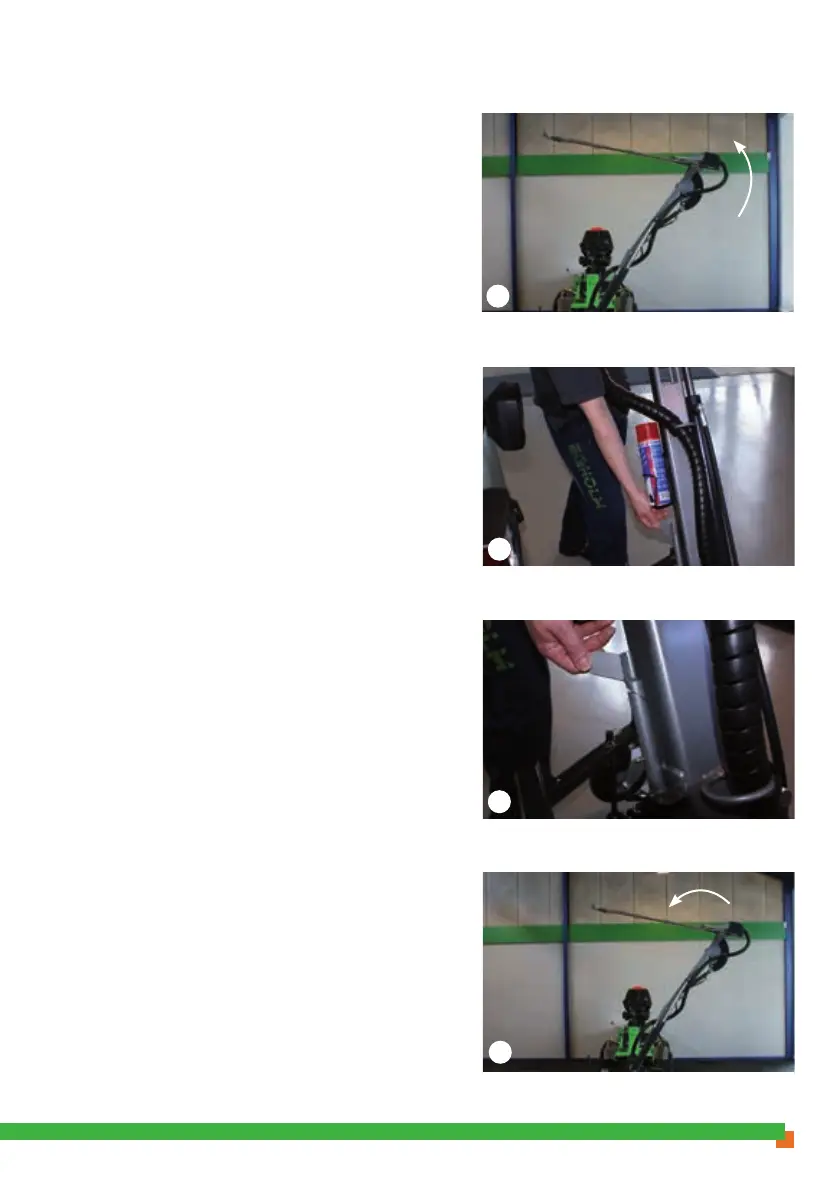 If a narrow path has to be trimmed, tilt the boom