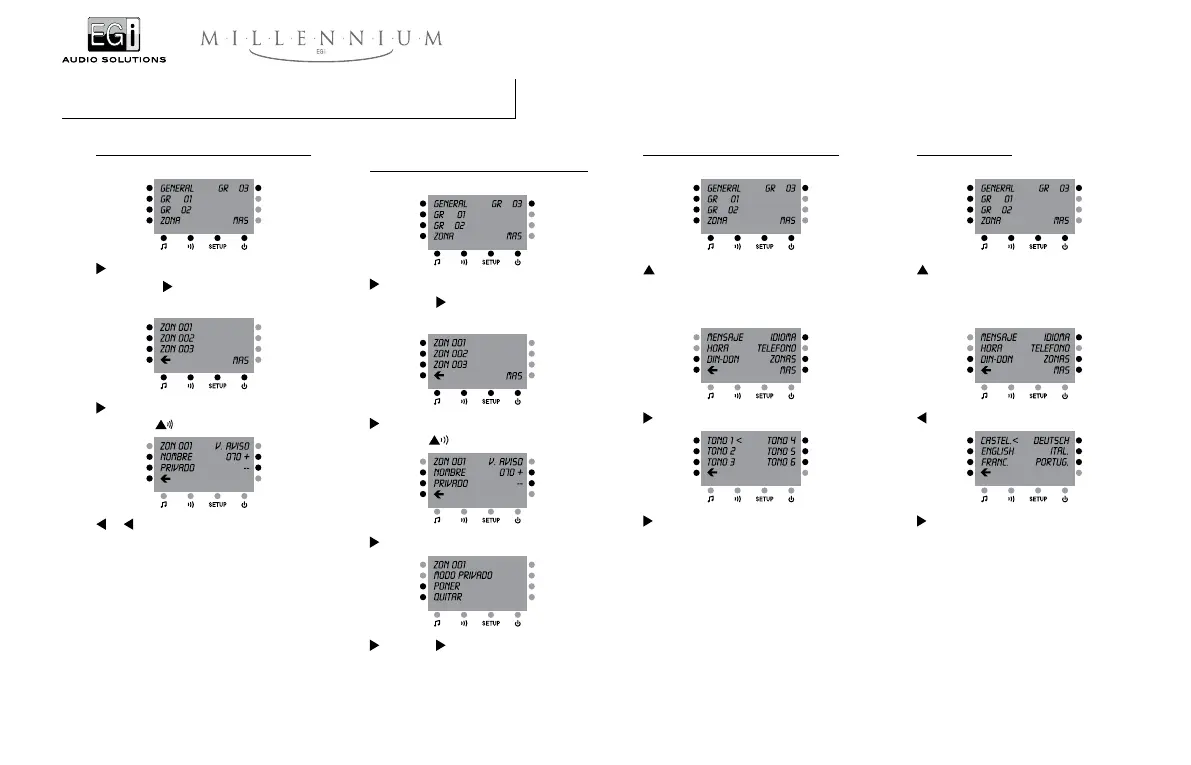 + o – cambia el volumen de aviso de la zona.