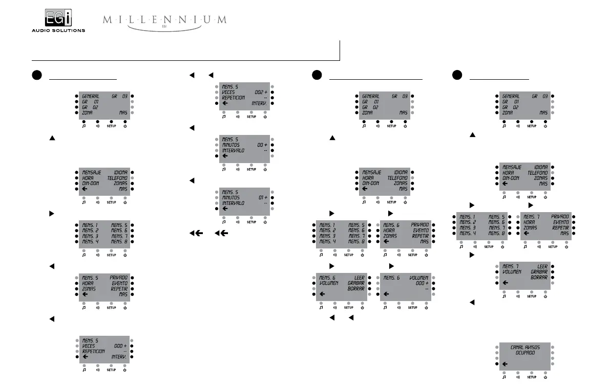 + o – cambia el volumen del mensaje.