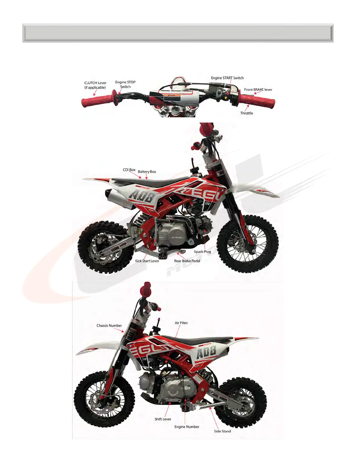 motorcycle. is section of the manual will describe the function, location, and operation of all the