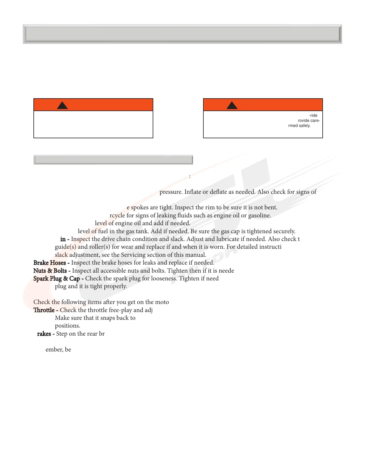 PRE-RIDE INSPECTIONPRE-RIDE INSPECTION
