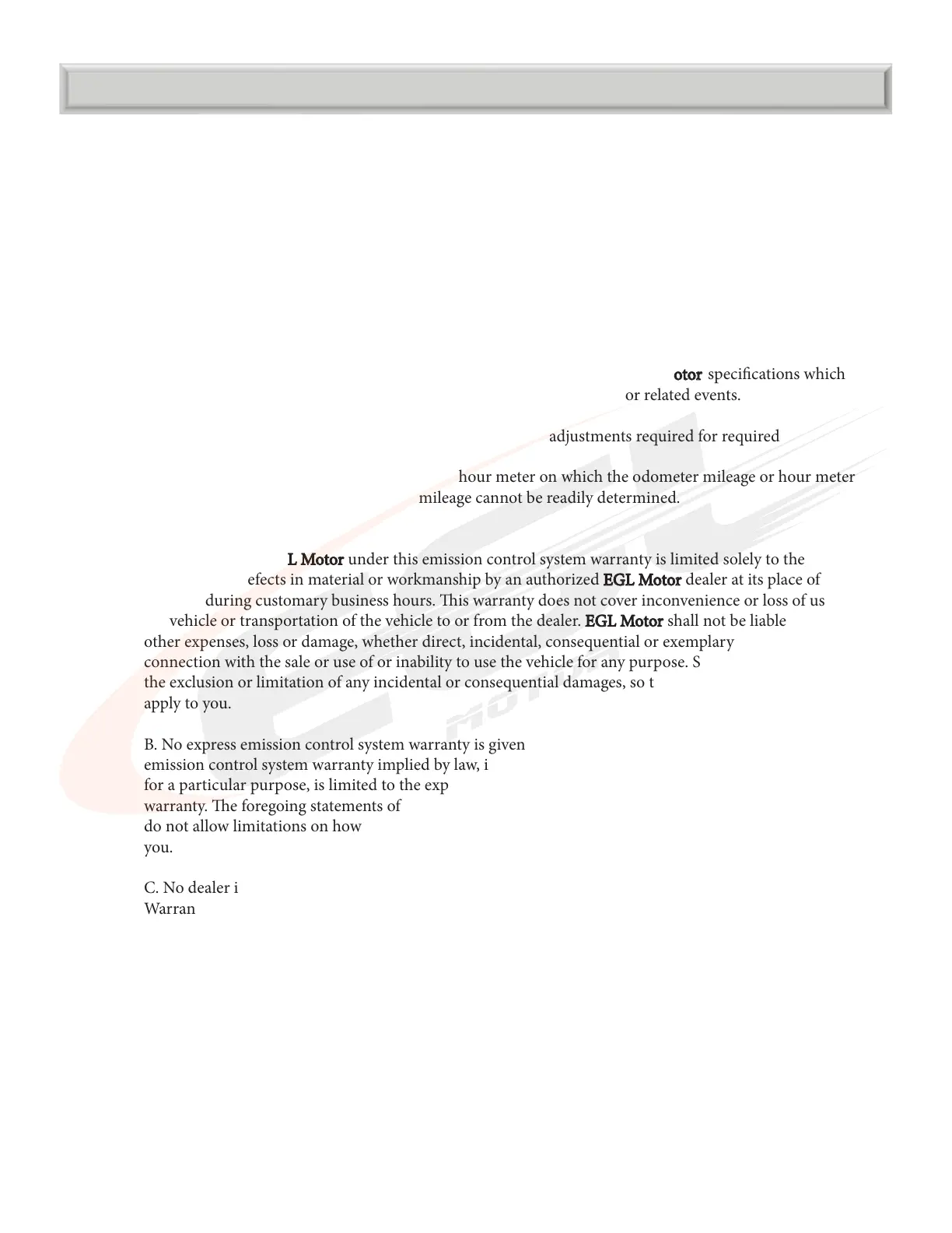 A. e liability of EGL MotorEGL Motor under this emission control system warranty is limited solely to the