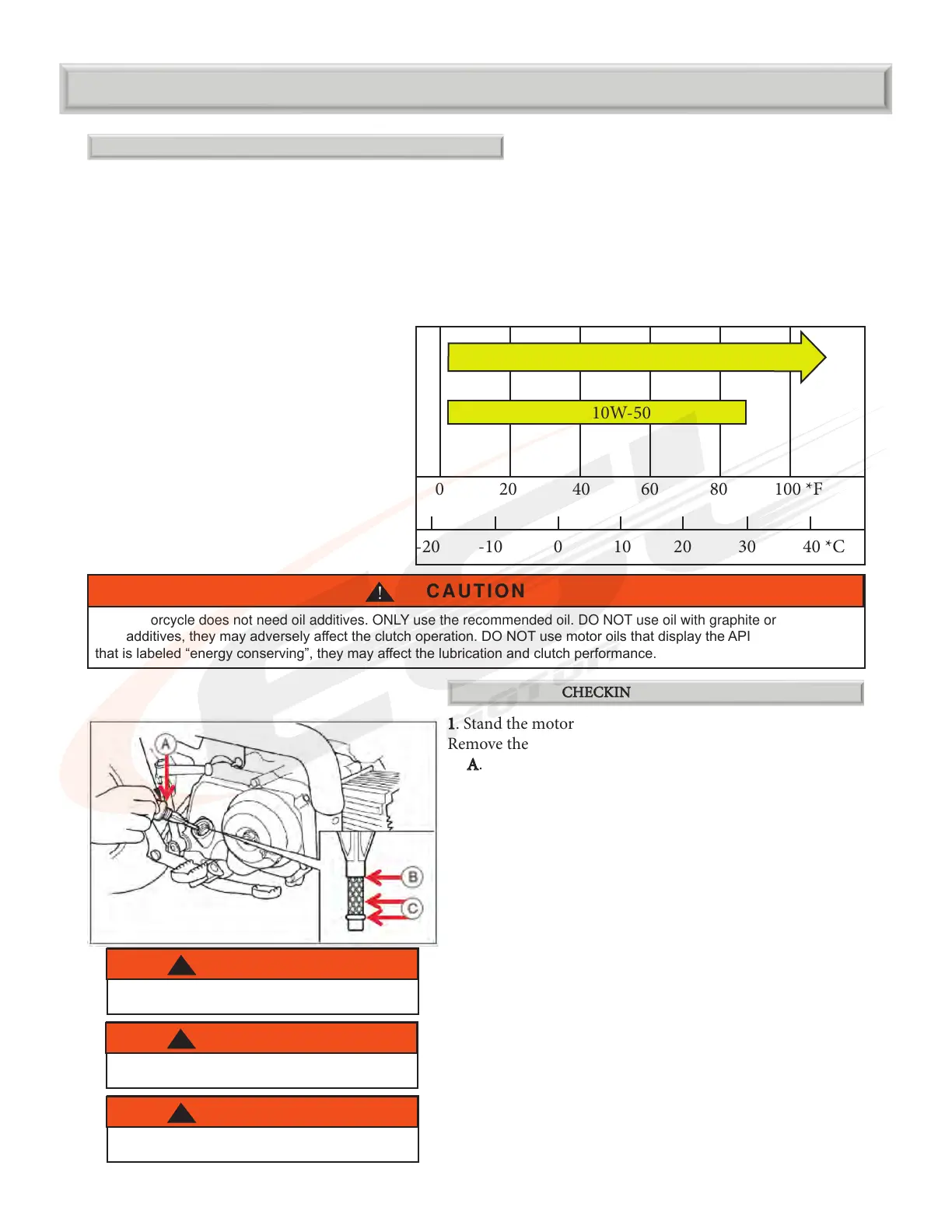 num additives, they may adversely aect the clutch operation. DO NOT use motor oils that display the API circular logo