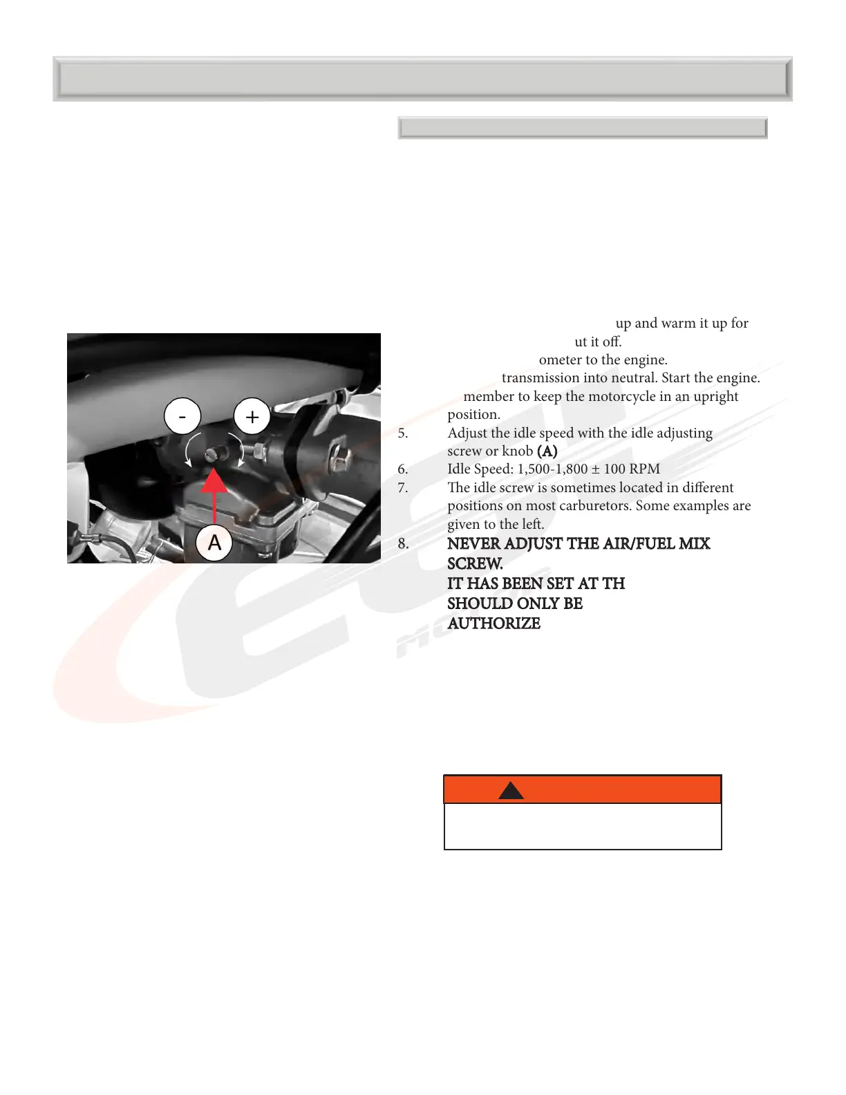8. 8. NEVER ADJUST THE AIR/FUEL MIXTURE NEVER ADJUST THE AIR/FUEL MIXTURE