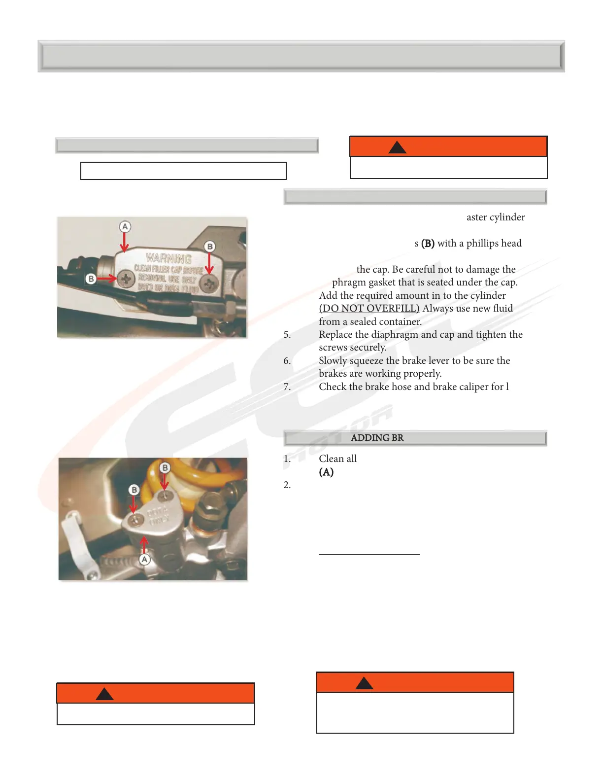 into the master cylinders. Follow the procedures below to check and ll the cylinders with the specied brake