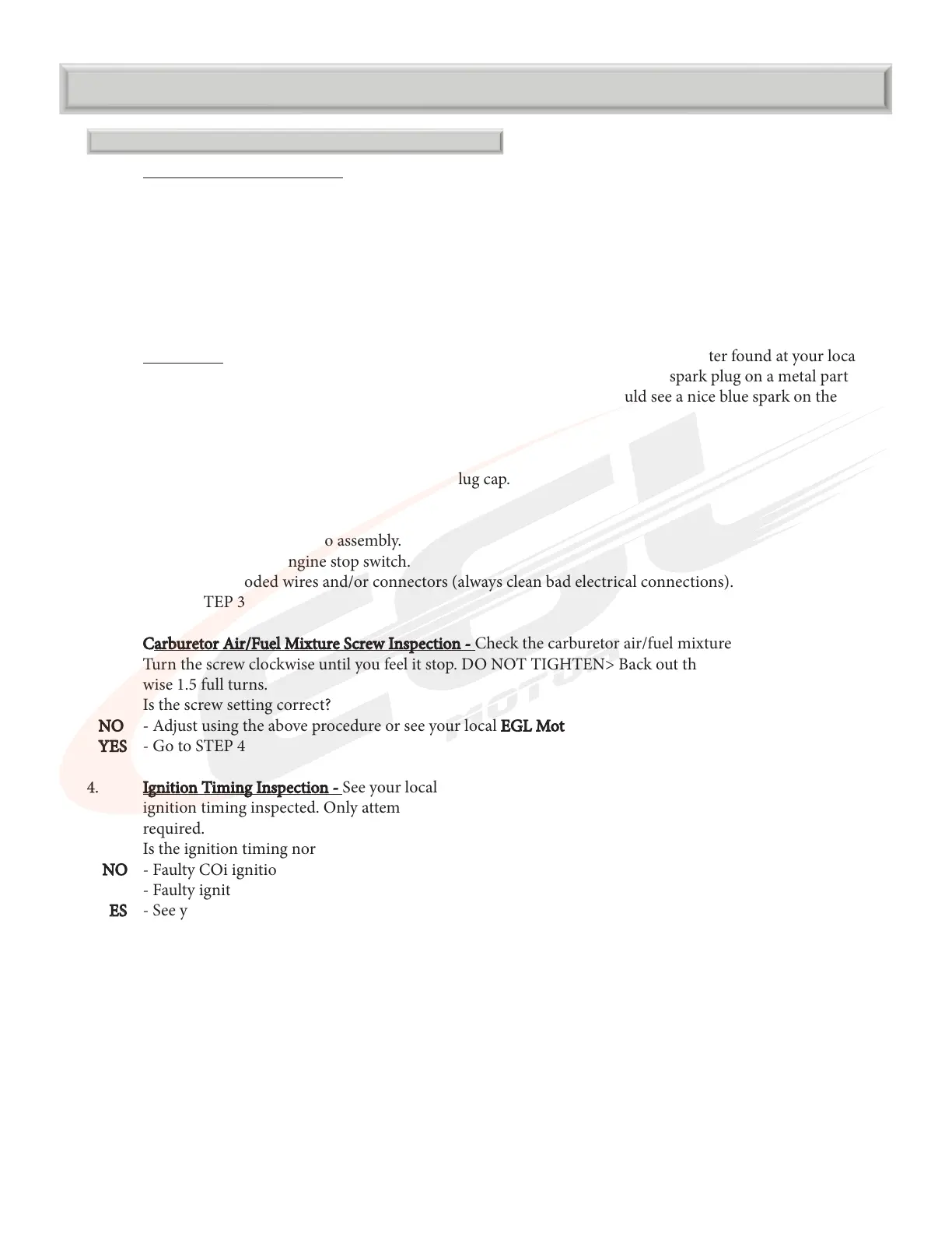 4. 4. Ignition Timing Inspection - Ignition Timing Inspection - See your local EGL MotorEGL Motor dealer or local motorcycle repair shop to have the