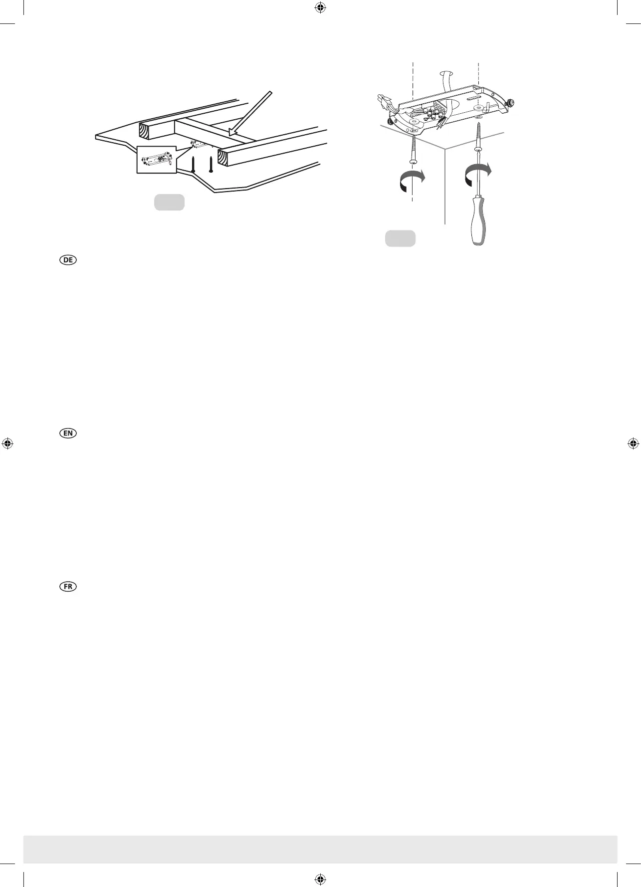 Remarque : Les vis de xation incluses sont conçues pour être utilisées avec solives de plafond en bois. Pour tous les autres matériaux, vous