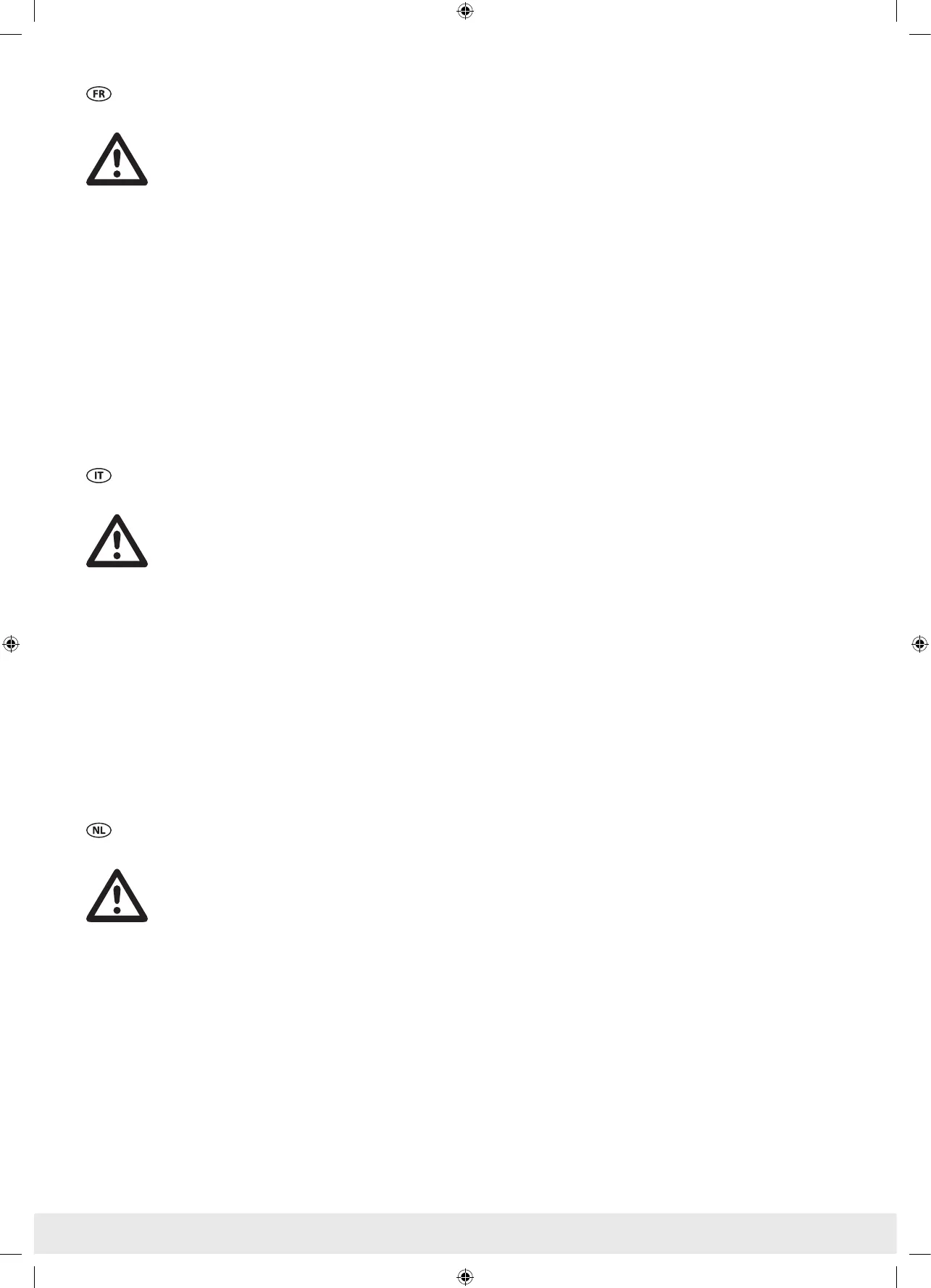 • L’oscillation peut être le fruit d’une diérence de niveau entre les pales. Contrôlez cela en mesurant la distance entre l’extrémité de chaque pale et