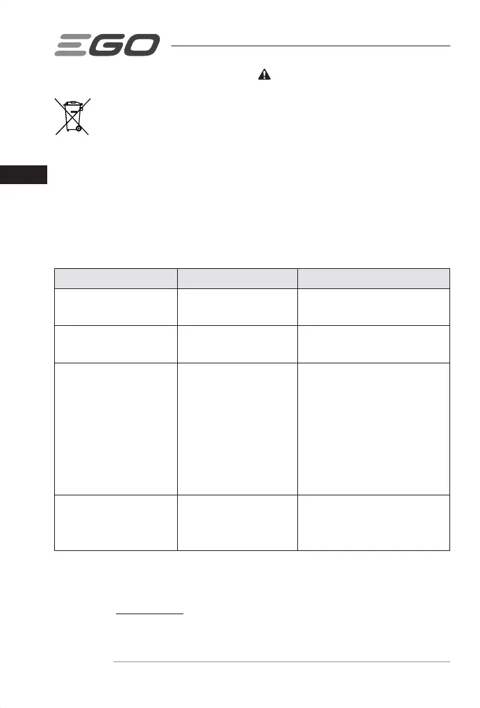 Visitare il sito web egopowerplus.com per consultare le condizioni complete della garanzia EGO.