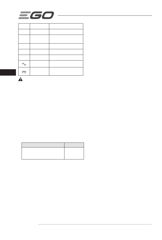 “elværktøj” i alle anførte advarsler henviser til EGO’s el- +